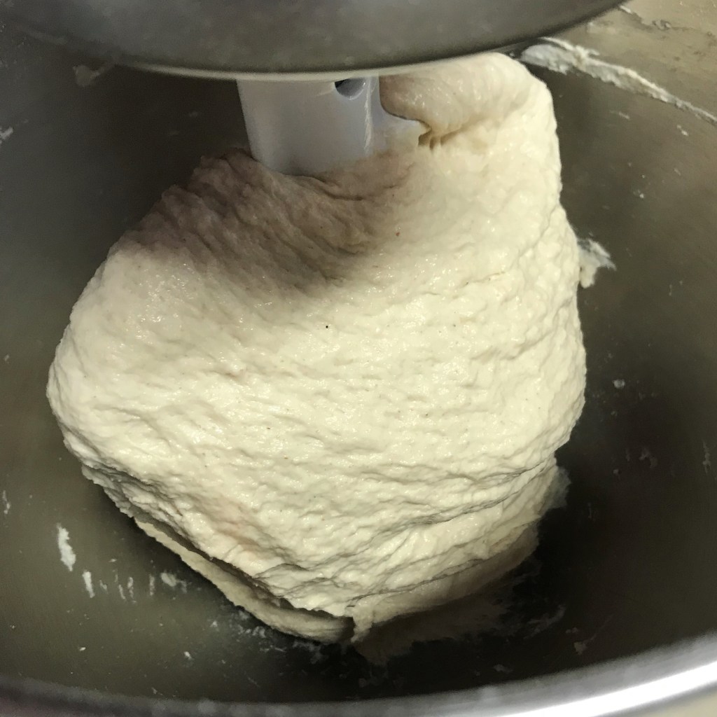 The dough seems less organized with the oil kneaded in, but that will change after a rest, and multiple stretch and folds. I know it’s tempting to add more flour, but don’t.