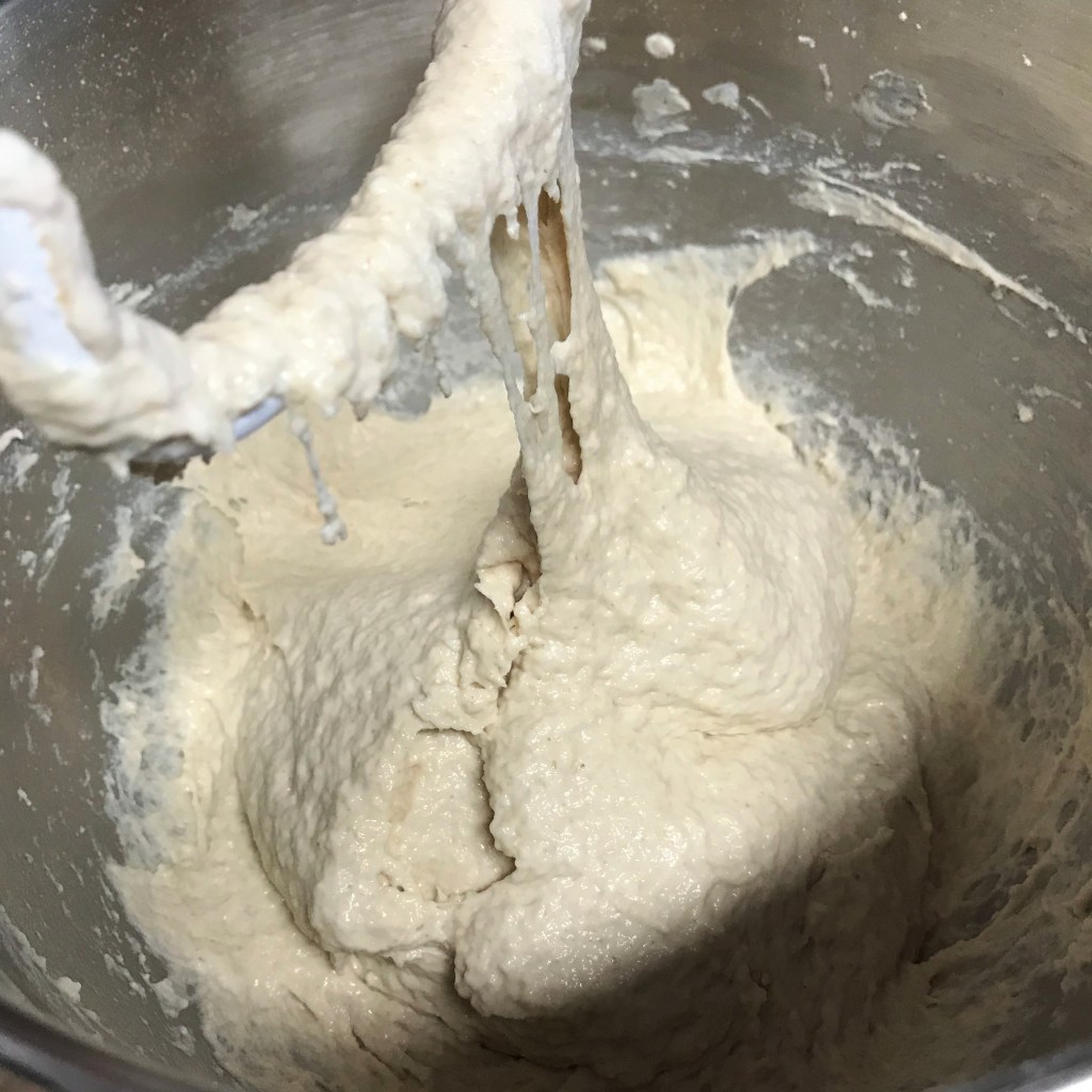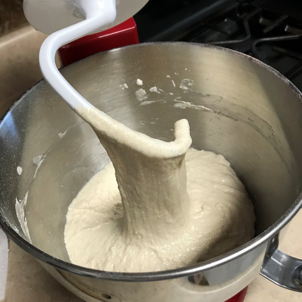 After only a couple minutes, you can see the dough is getting stretchy. That’s a good sign!