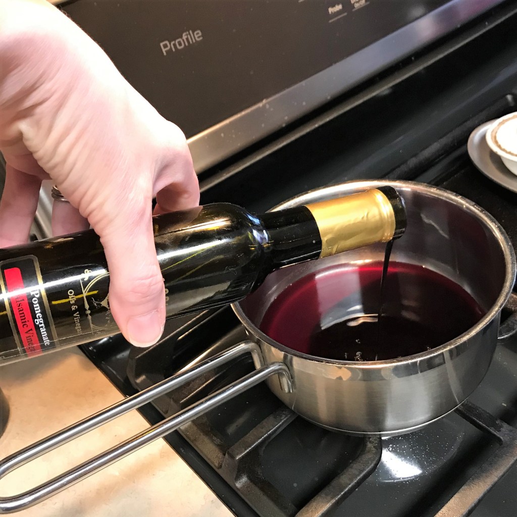 A couple tablespoons of pomegranate infused balsamic vinegar will add depth to the reduction.