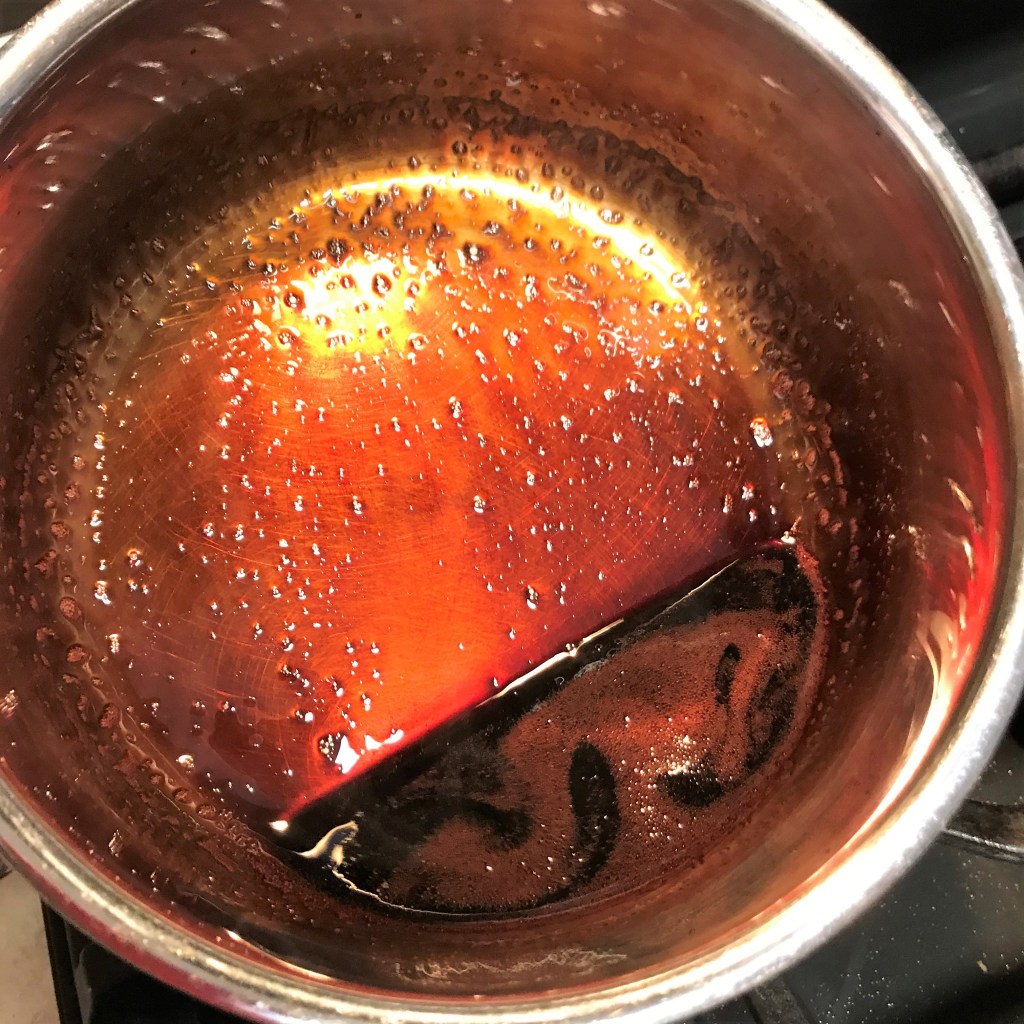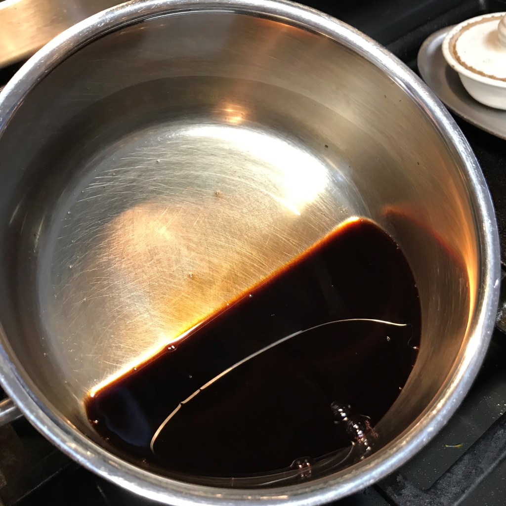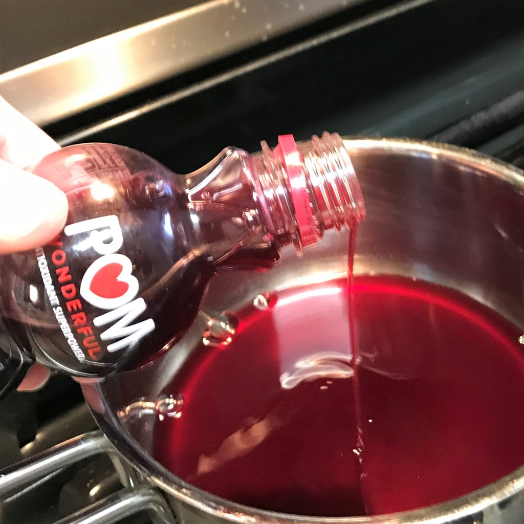 At the beginning, I have about 5 ounces of pom juice and balsamic mixture. Let’s give it 20 minutes.