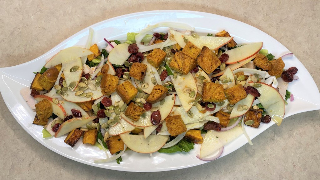 Our meal was delicious and fully representative of autumn, especially with this kugel, with all the flavors of a sweet caramel apple from the county fair.