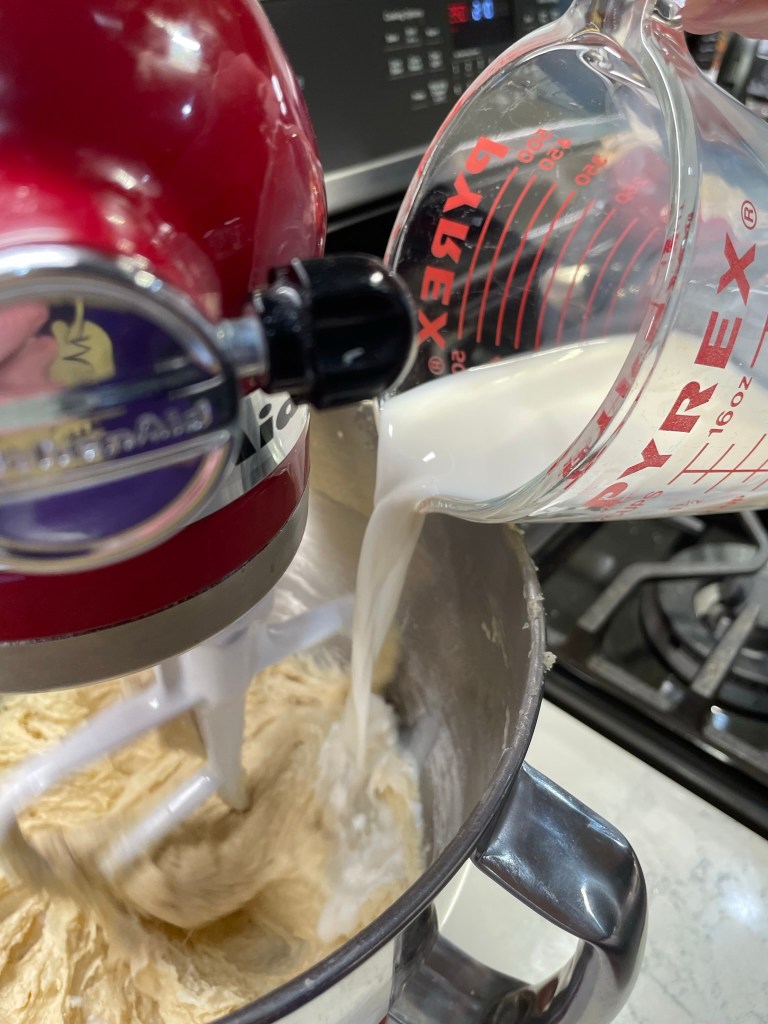 First and foremost, I’ve learned the importance of getting my ducks in a row. Things go much more smoothly when I take the time to measure out and line up my ingredients. Here, you see that I’ve organized everything into the order I’ll need them. I took time to make fresh coffee for the batter, and I even measured out the Jameson and Bailey’s so that they were ready at the right time. I cannot describe how much this single practice has changed my baking game. If you struggle with getting things right in baking, maybe this will help you, too.
