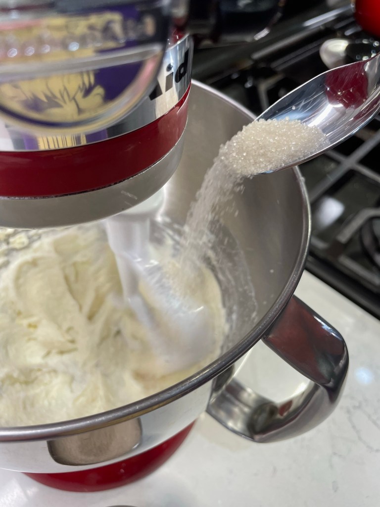 - Using a stand or handheld mixer, beat butter until it is light and fluffy (this is tougher with Irish butter, I discovered). Gradually add sugar while mixer is running and continue beating until all sugar is incorporated. Add eggs, one at a time, beating to thoroughly blend.
