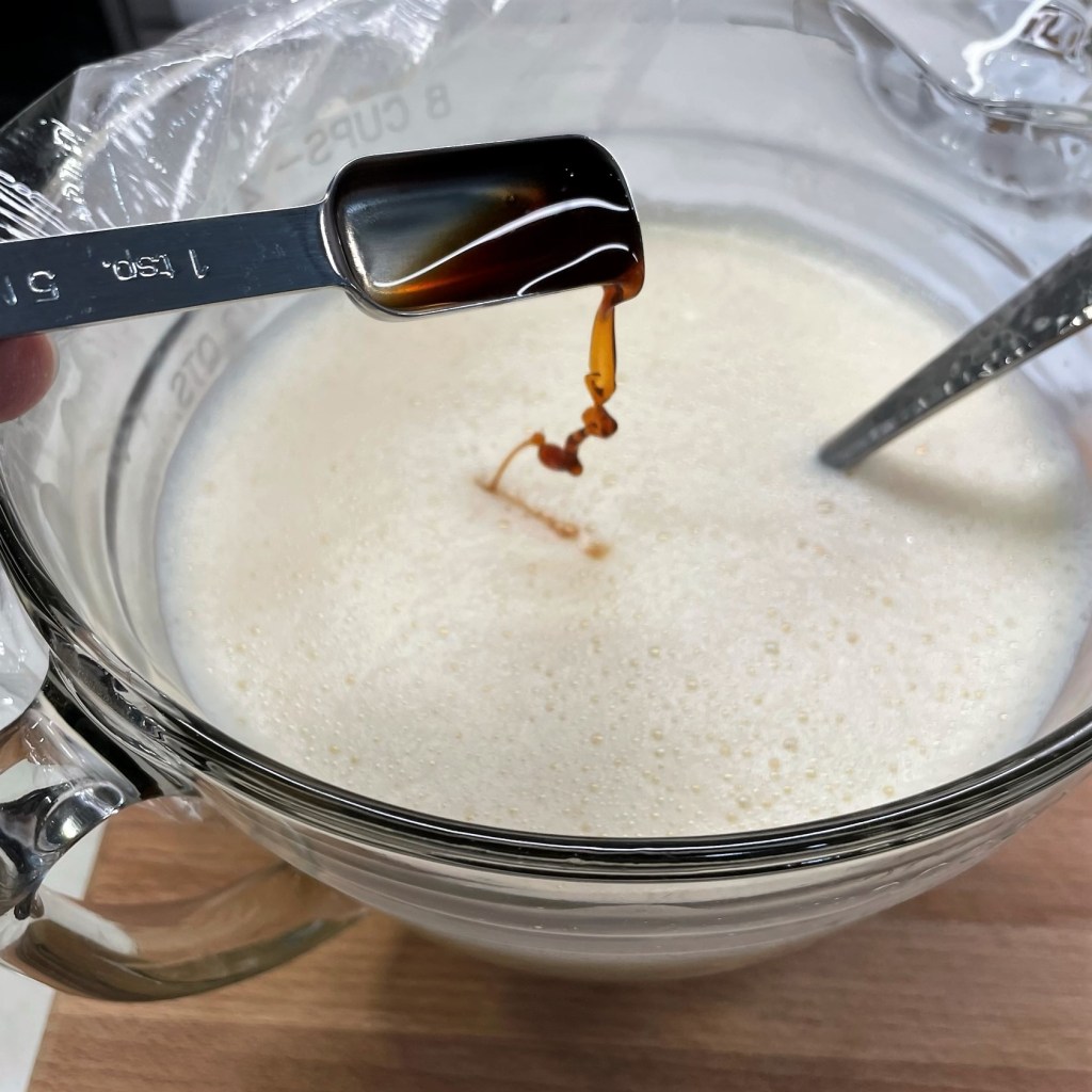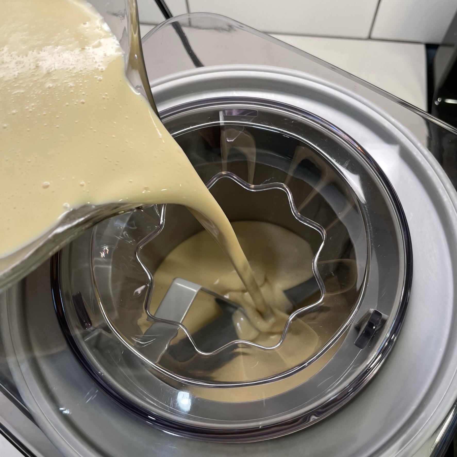 - Using low speed, gently blend in the heavy cream. Cover and refrigerate the ice cream base for several hours until fully chilled.