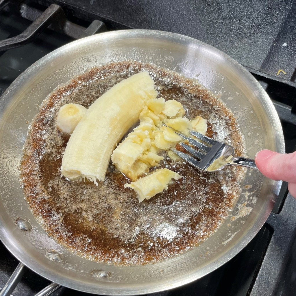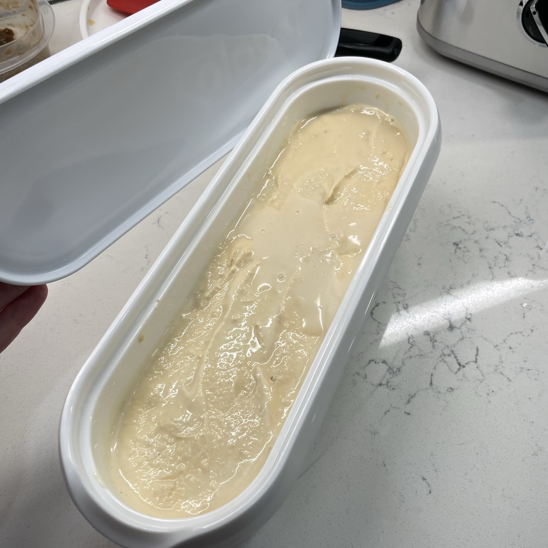 - Whisk chilled ice cream base vigorously until it’s smooth again, and then pour it into the ice cream machine. Churn until mixture is nearly finished, and then add the cut-up banana bits, churning again for a few minutes to incorporate. During the final minute of freezing, pour in vodka (if using) and allow it to disperse throughout the ice cream.