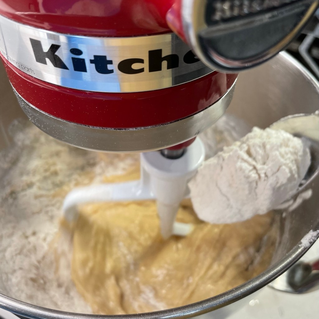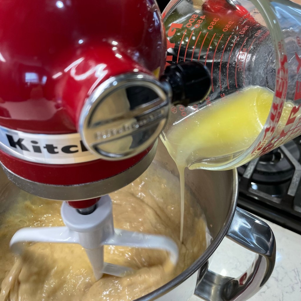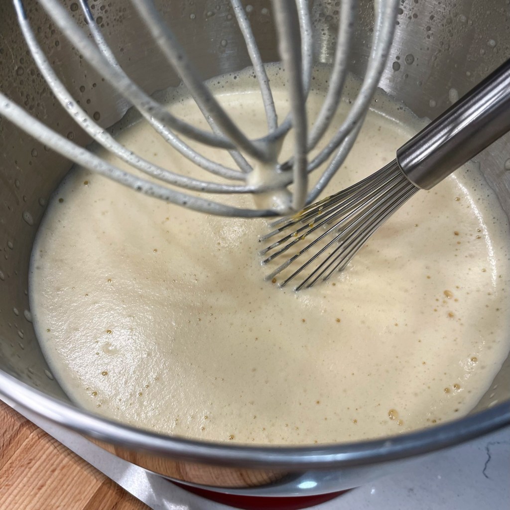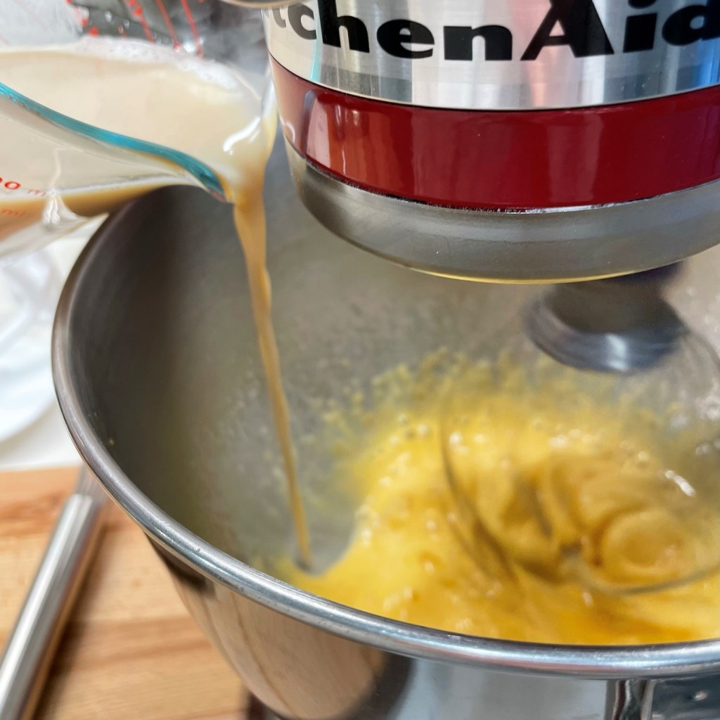 First into the mixer was the sweetened condensed milk and the regular whole milk. These two ingredients are very different in consistency, so getting them blended first felt important. Next came the pudding mix, which I whisked and whipped until it was a soft, airy consistency. I stirred in the heavy cream, and I was trying to act quickly before the pudding thickeners took over, and then this base mixture went into the fridge for a few hours to chill through before churning in my electric ice cream maker.