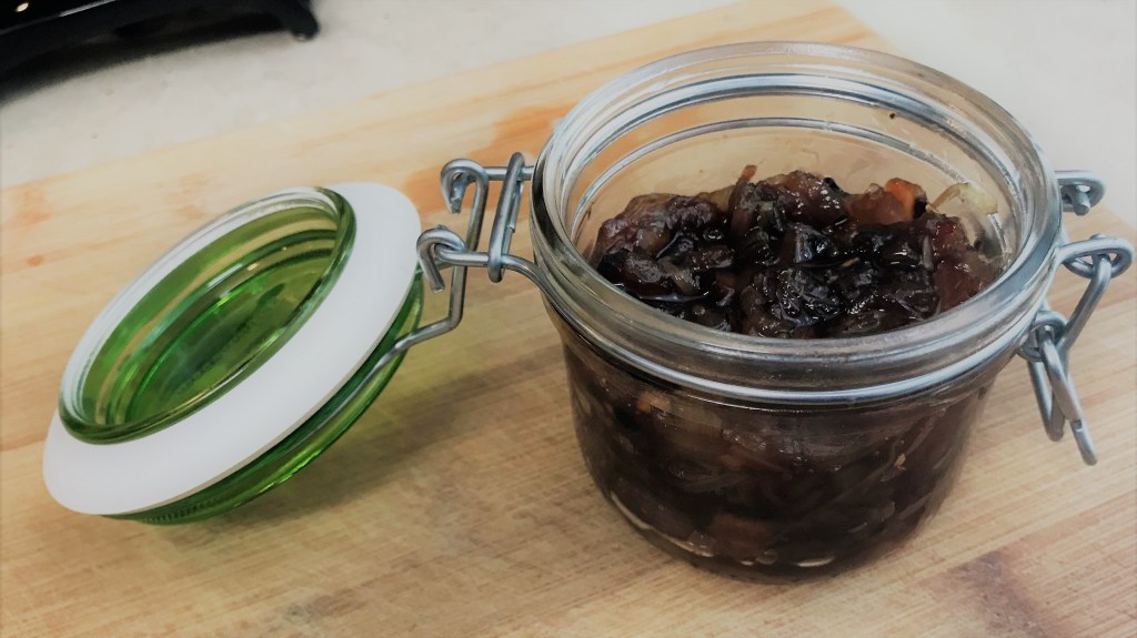 The add-ins play so well with the caramelized onions in this marmalade. If you can’t get your hands on the maple sugar, substitute a combination of light brown sugar and real maple syrup.
