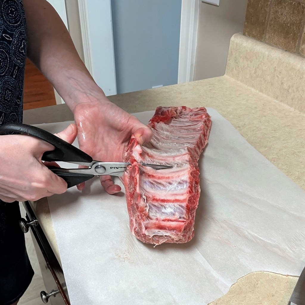 I used kitchen shears to cut the ribs into portions.