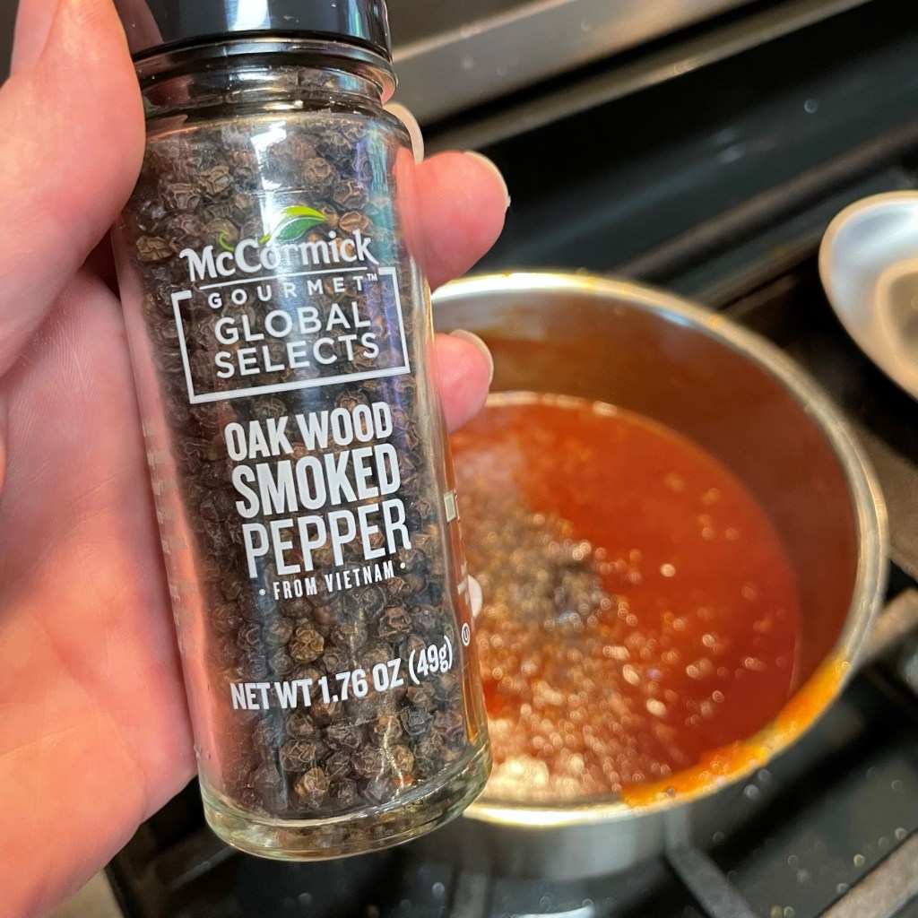 In lieu of cloves (which I did not have), I added some oak wood smoked pepper to my sauce. This stuff is so versatile!