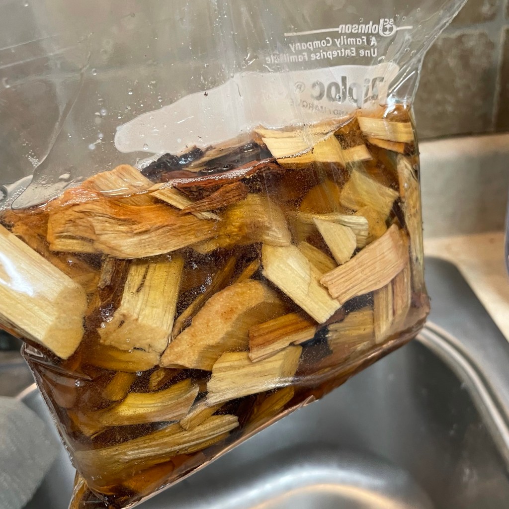 We wasted half an hour soaking the hickory chips; they did not add a thing to the flavor of the ribs. I’m sure the problem was our “smoker” box.