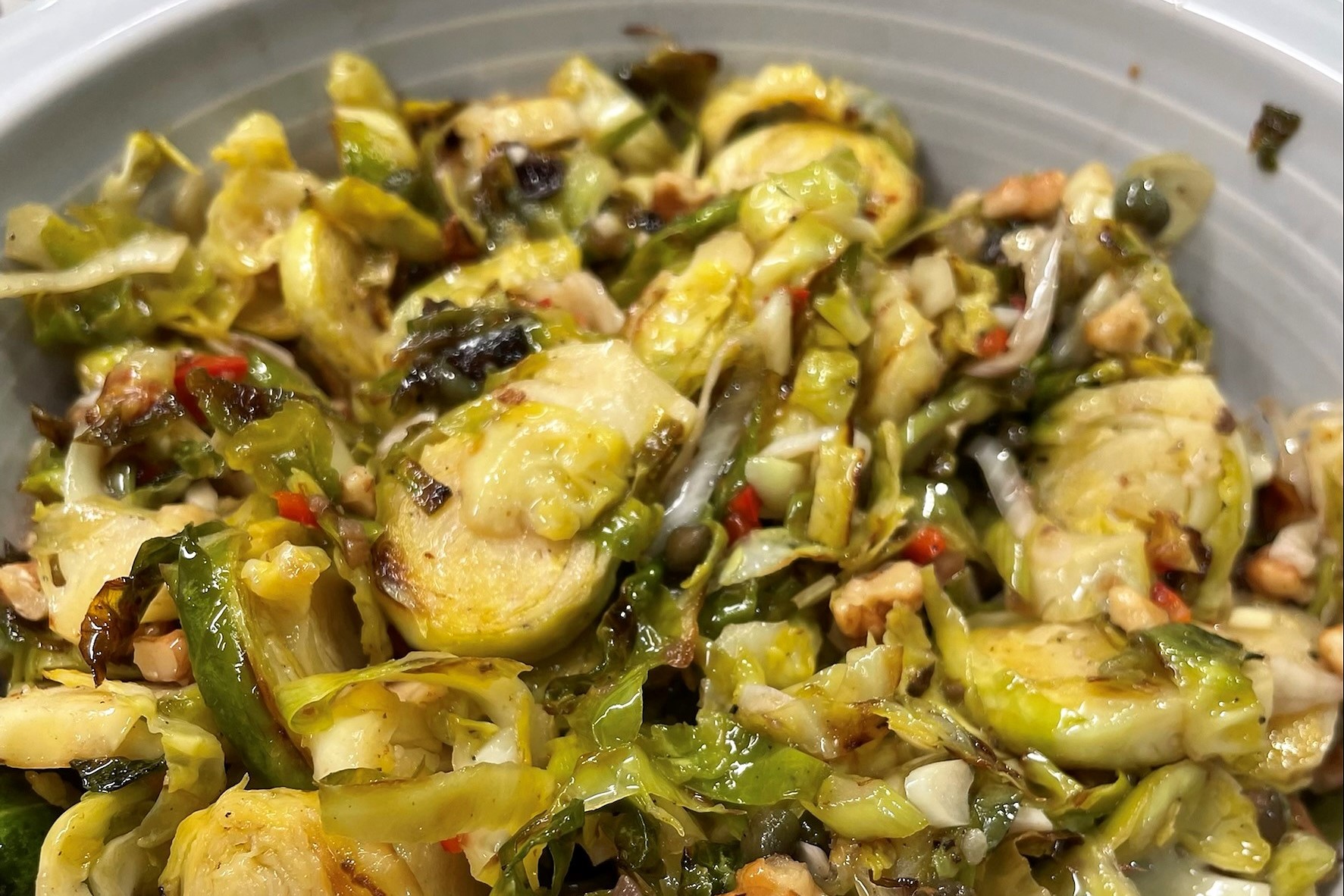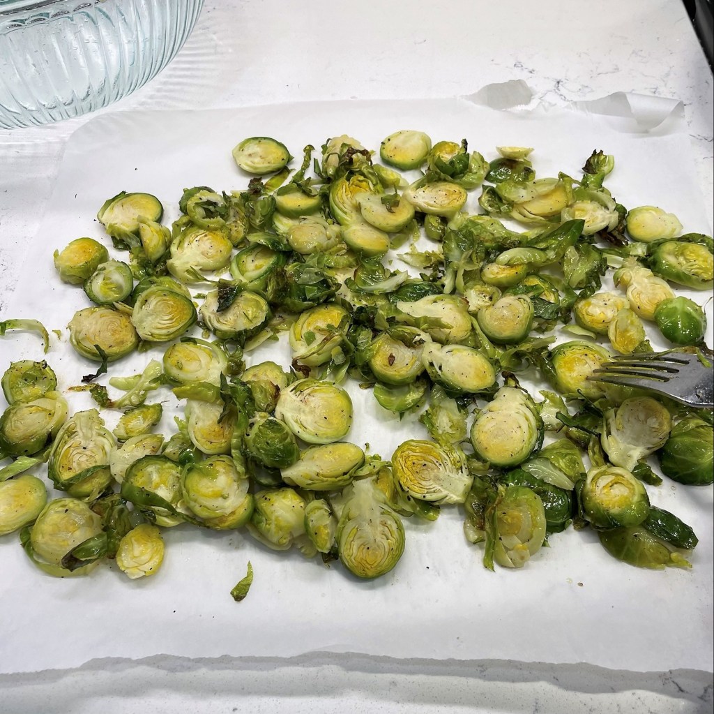 - 1 1/2 pounds Brussels sprouts, trimmed and halved