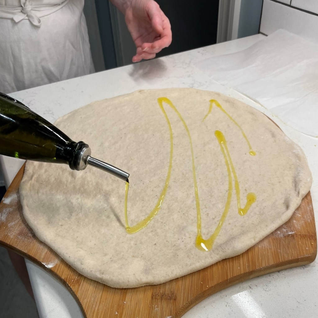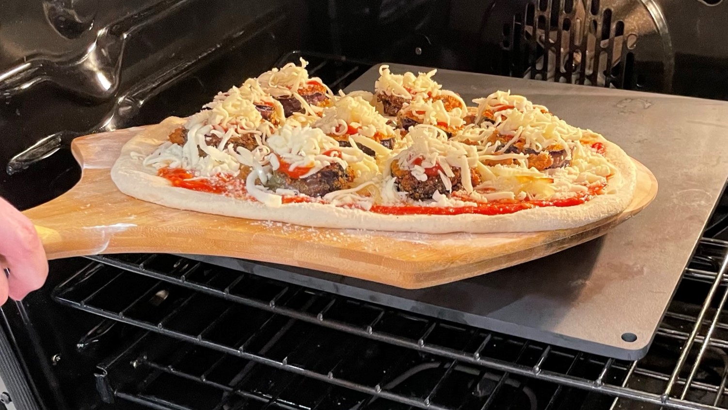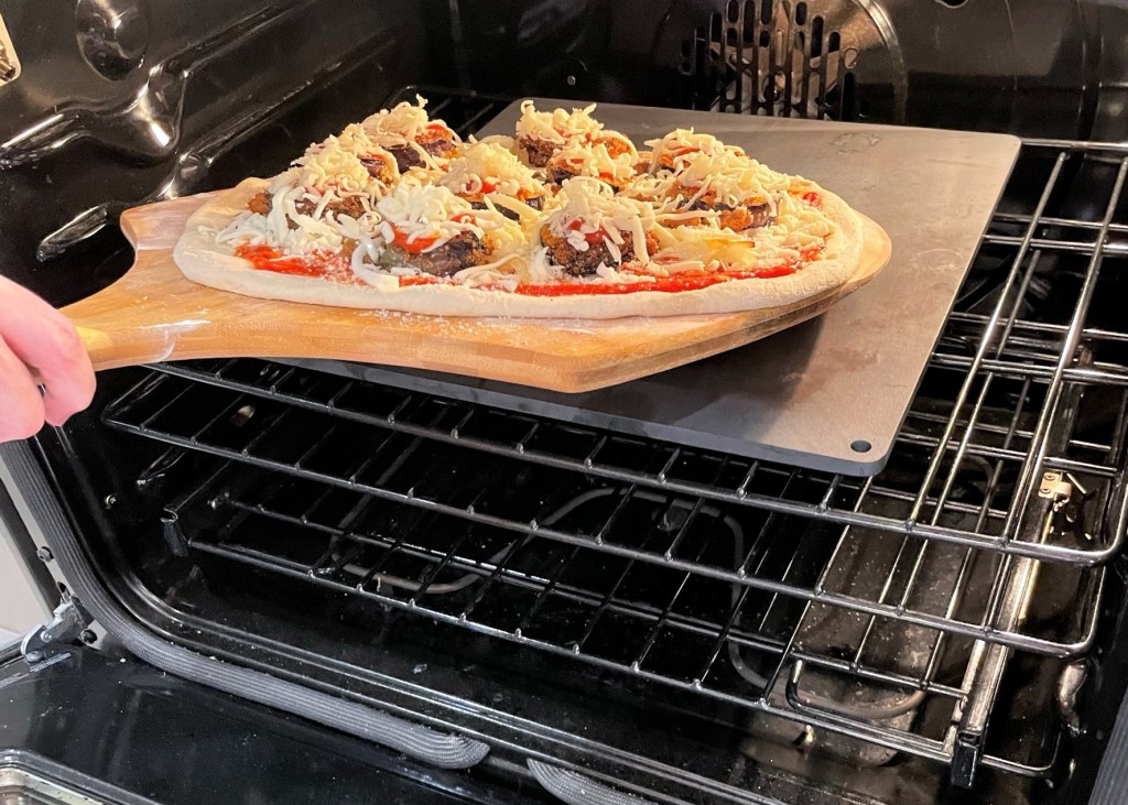 We bake all of our pizzas on a heavy pizza steel, pre-heated in a 550° F oven for one hour. If you bake on a pizza stone, use the highest temperature recommended for your stone, and adjust baking time accordingly.