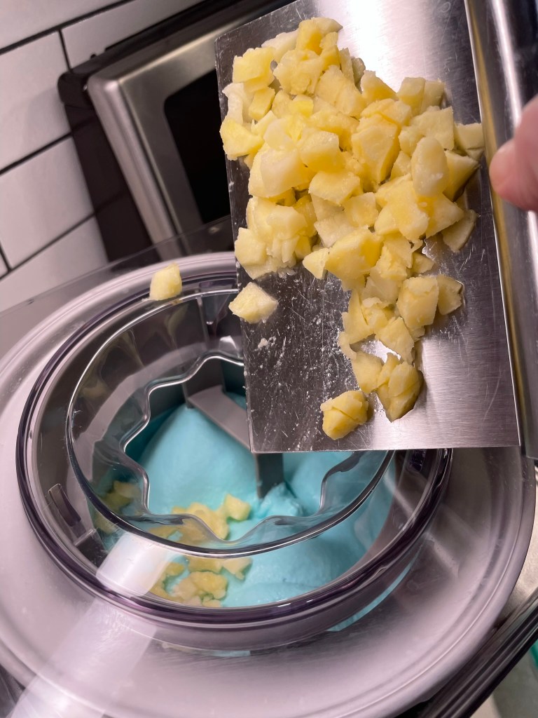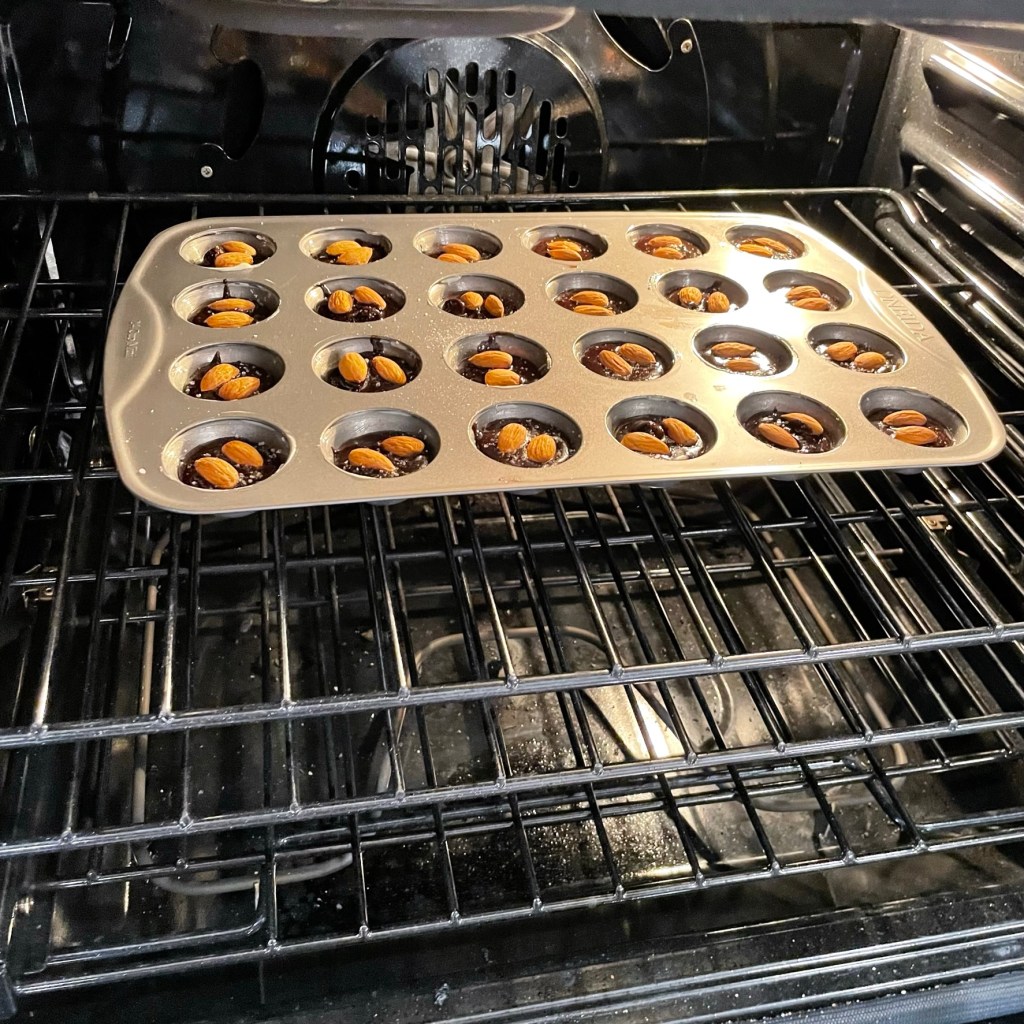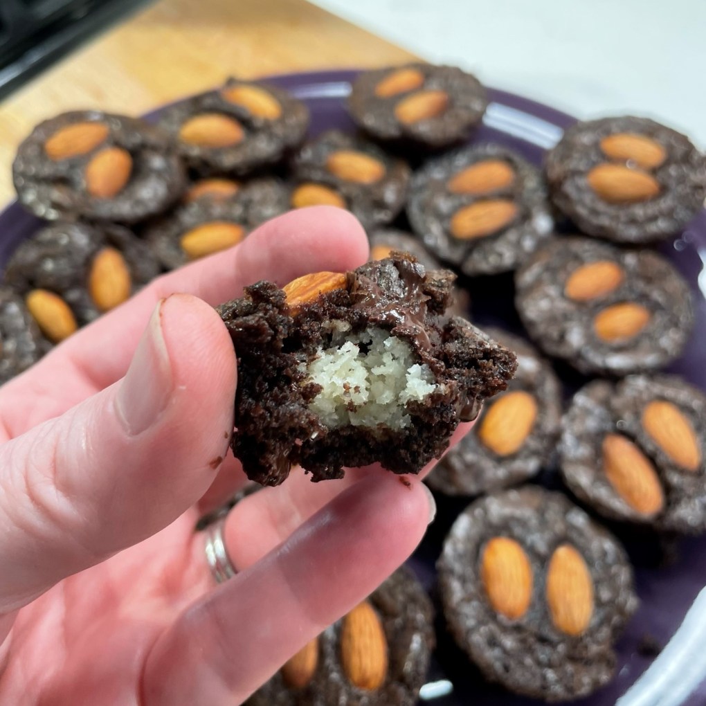 I had a time deciding what flavor jelly would be right, and it hinged on the texture of the spread. See? Y’all had no idea how much pressure I put on myself to create these fun things! A true jelly would be too wet and ooze all over the oven, so I started looking at preserves with bits of actual fruit. This blend of four fruits was perfect, bringing berries and cherries into the mix. I set up an experiment with three cookies to see whether it was best to bake them with the preserves already in, or to create thumbprints halfway through baking, and whether it made sense to add a ring of extra peanut butter chips on top for a little more melting impact with the marshmallow.