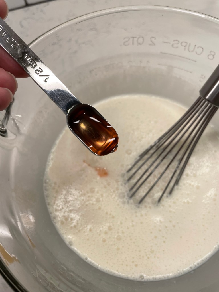 - Add egg and vanilla and beat again until fluffy. Drizzle in the dissolved soda and beat just until combined.