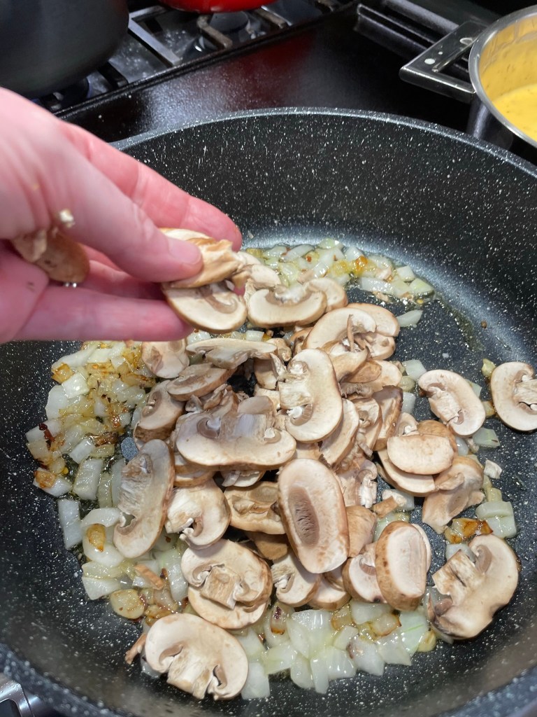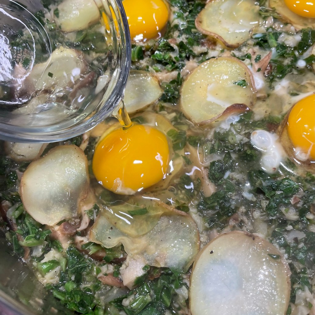 - 1/2 pound bulk breakfast-style sausage (spicy is great here)