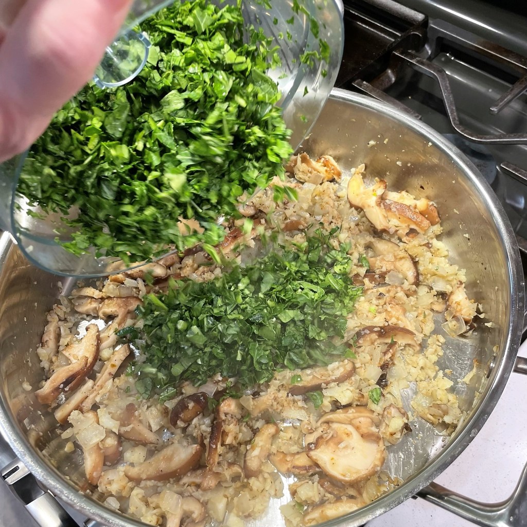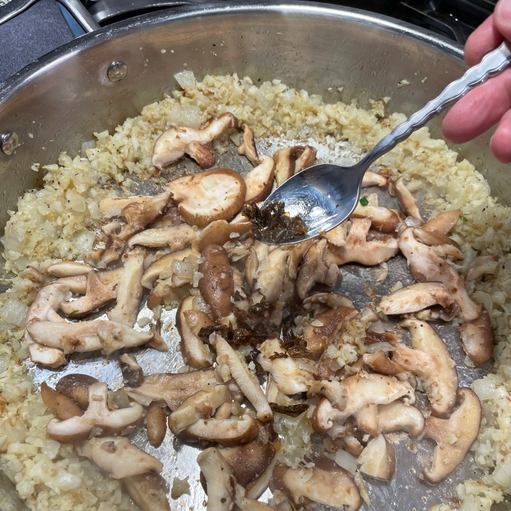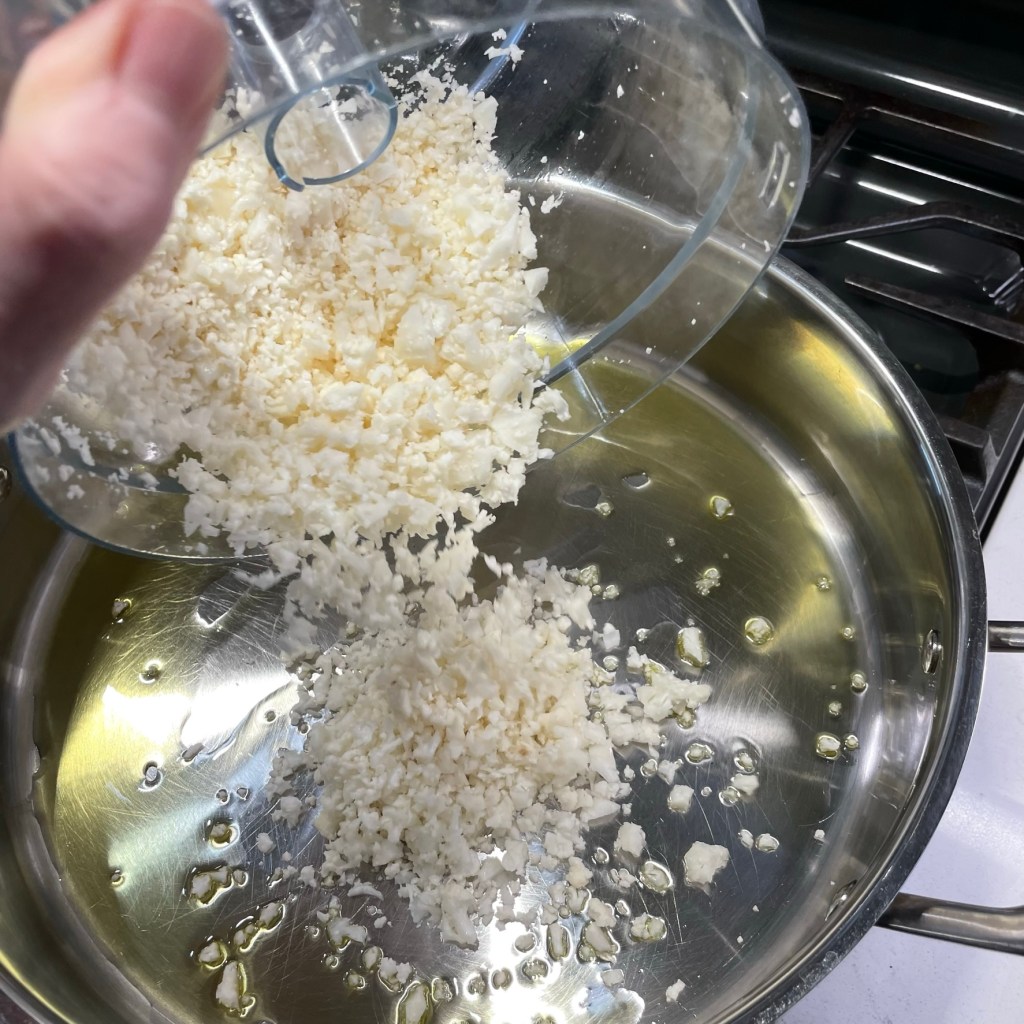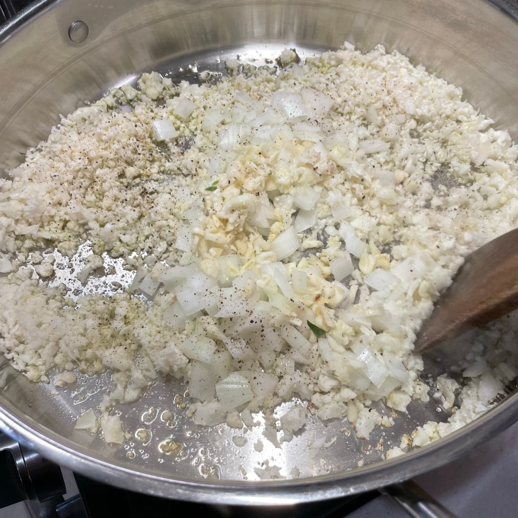 - Place a wide, shallow skillet or pot over medium heat. Add a swirl of olive oil and crumble up the sausage into the pan. Let it be for a couple of minutes before you toss it with a utensil, to allow browning to happen. Once the sausage begins to brown, add the onions and continue to cook until the meat is fully browned and the onions are tender. Add garlic and the smoky pepper seasoning. Transfer the sausage mixture to a separate bowl and set aside until after the next step.