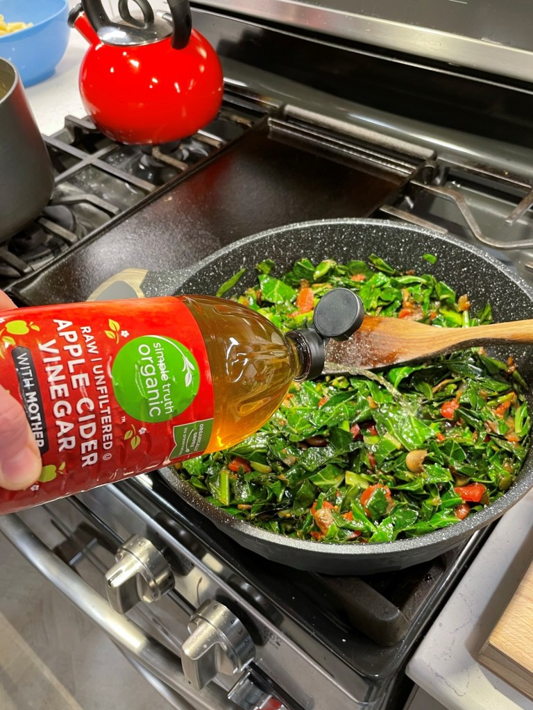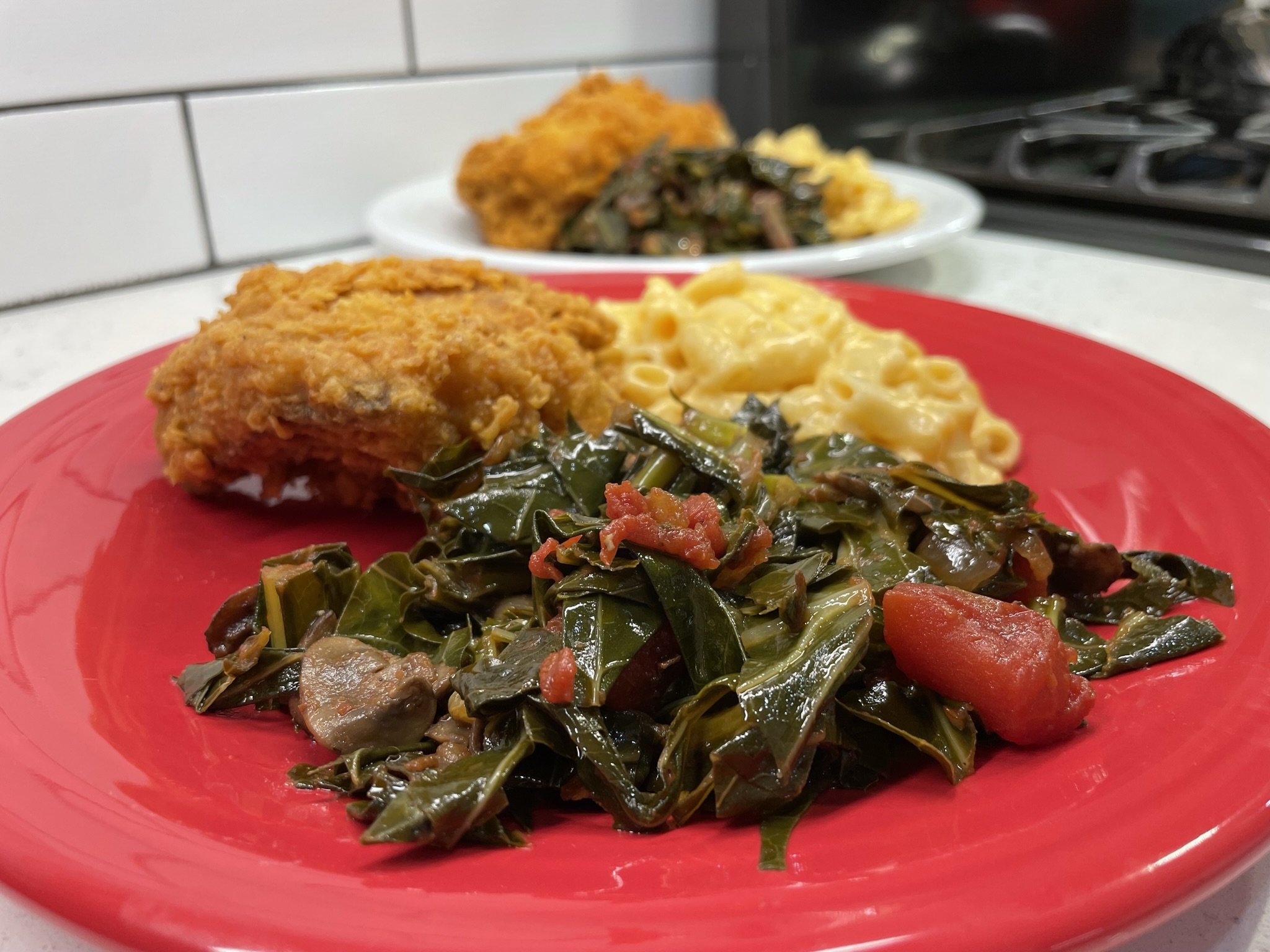 Beer malt vinegar gave my collard greens a savory twist, making them a great option for Thanksgiving.
