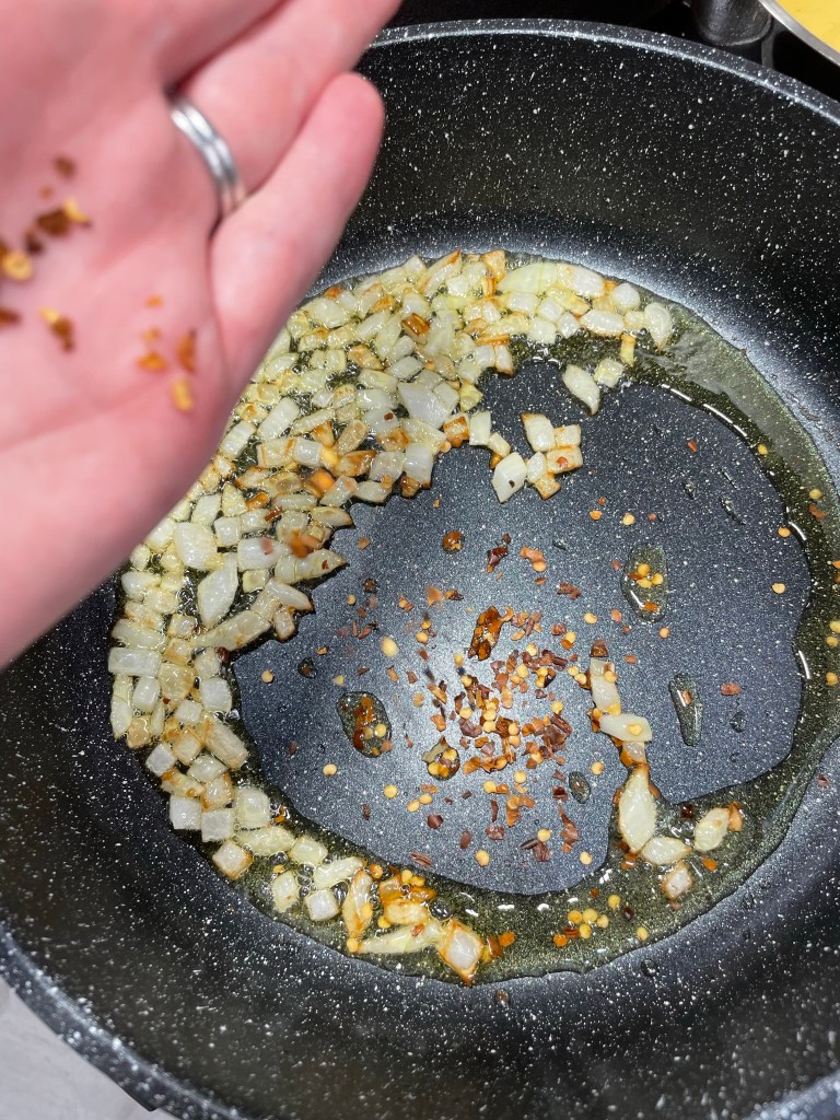 - A few shakes of dried pepper flakes (mine were smoky chipotle)