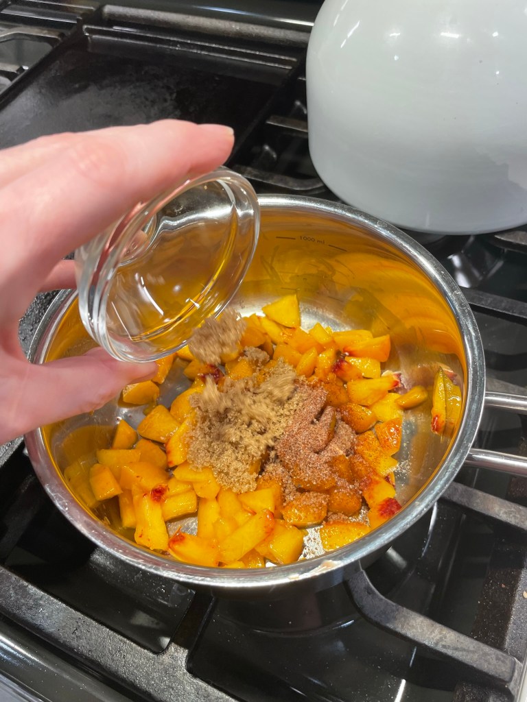 - A splash of water, as needed, to cook down the peaches