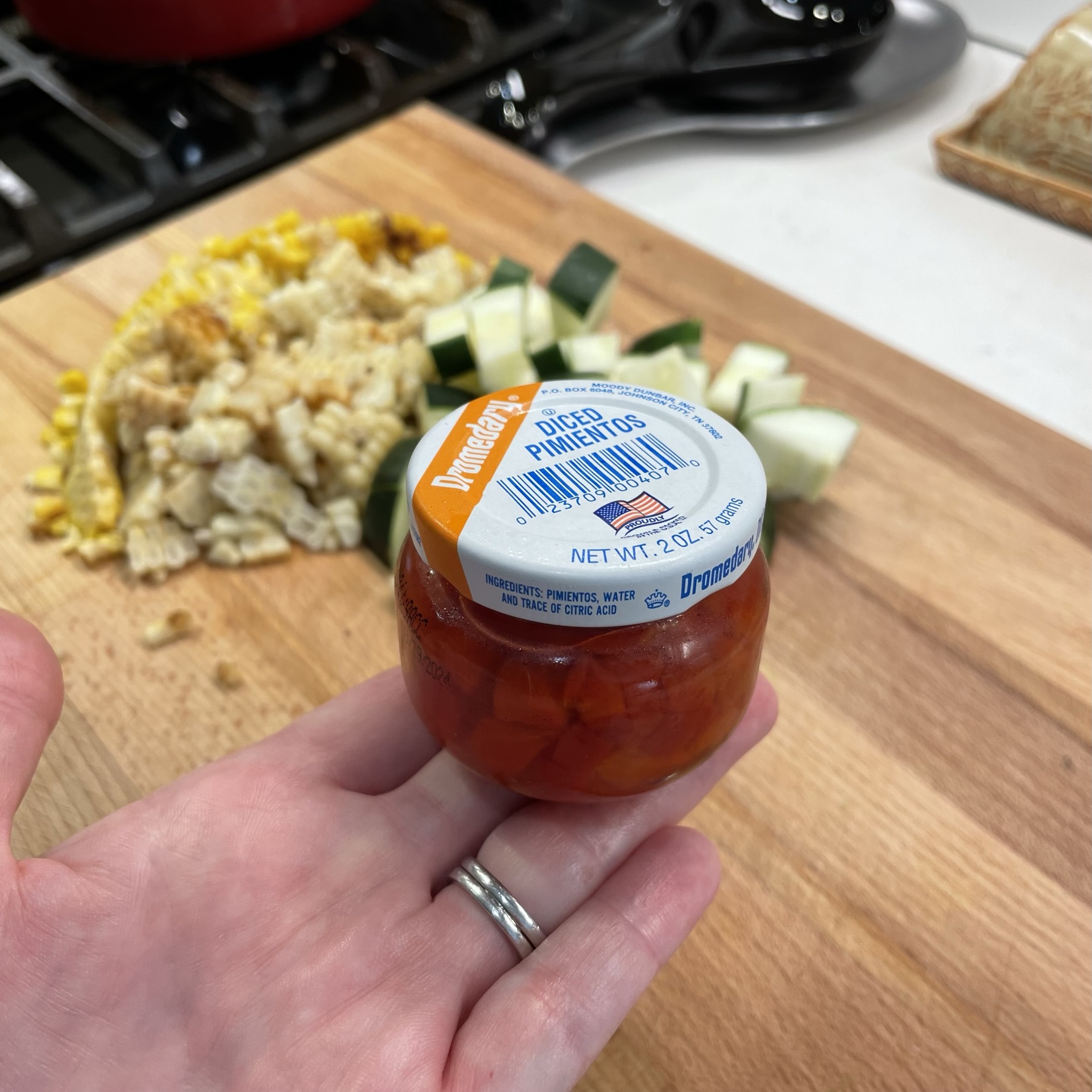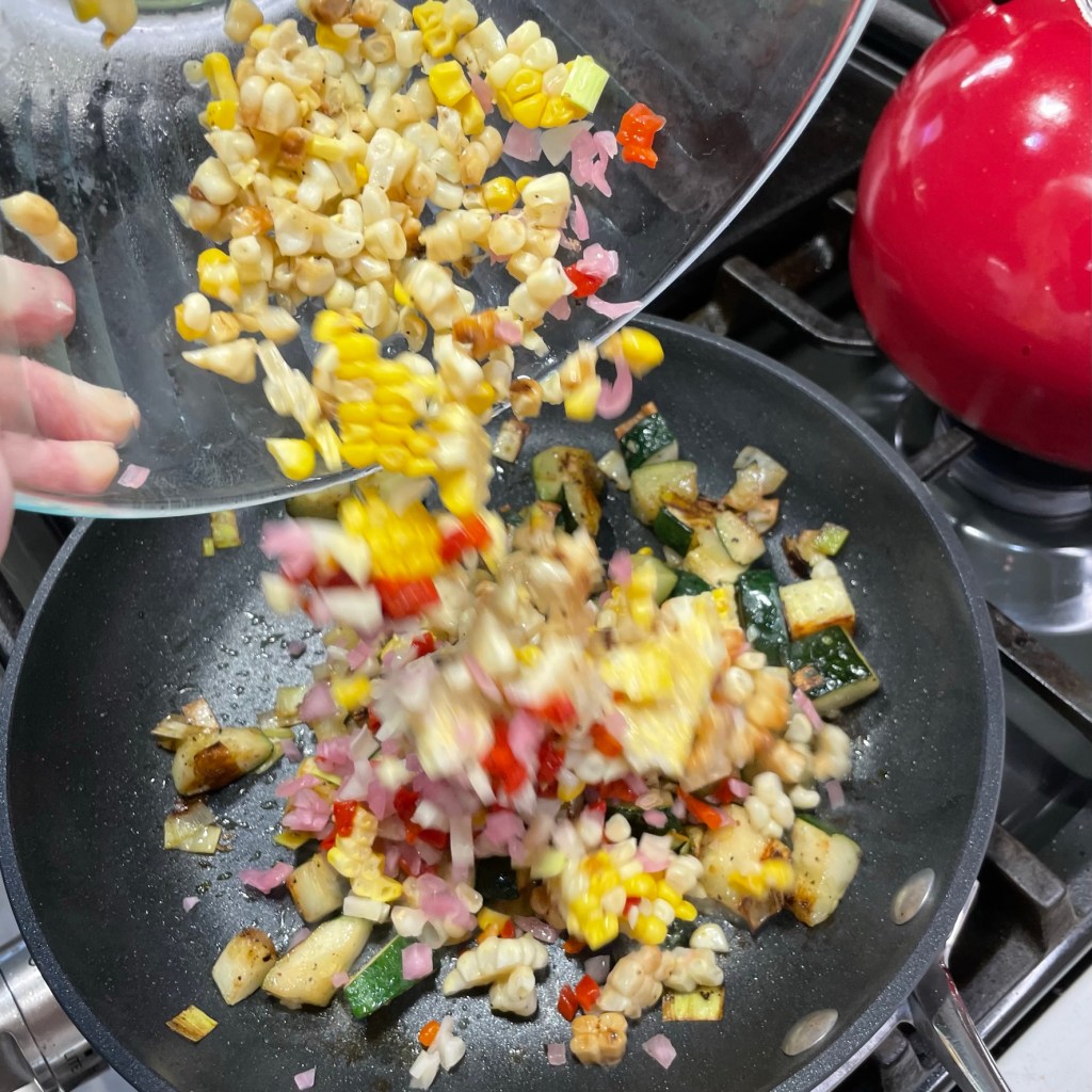 - 1 ear of grilled corn, stripped from cob