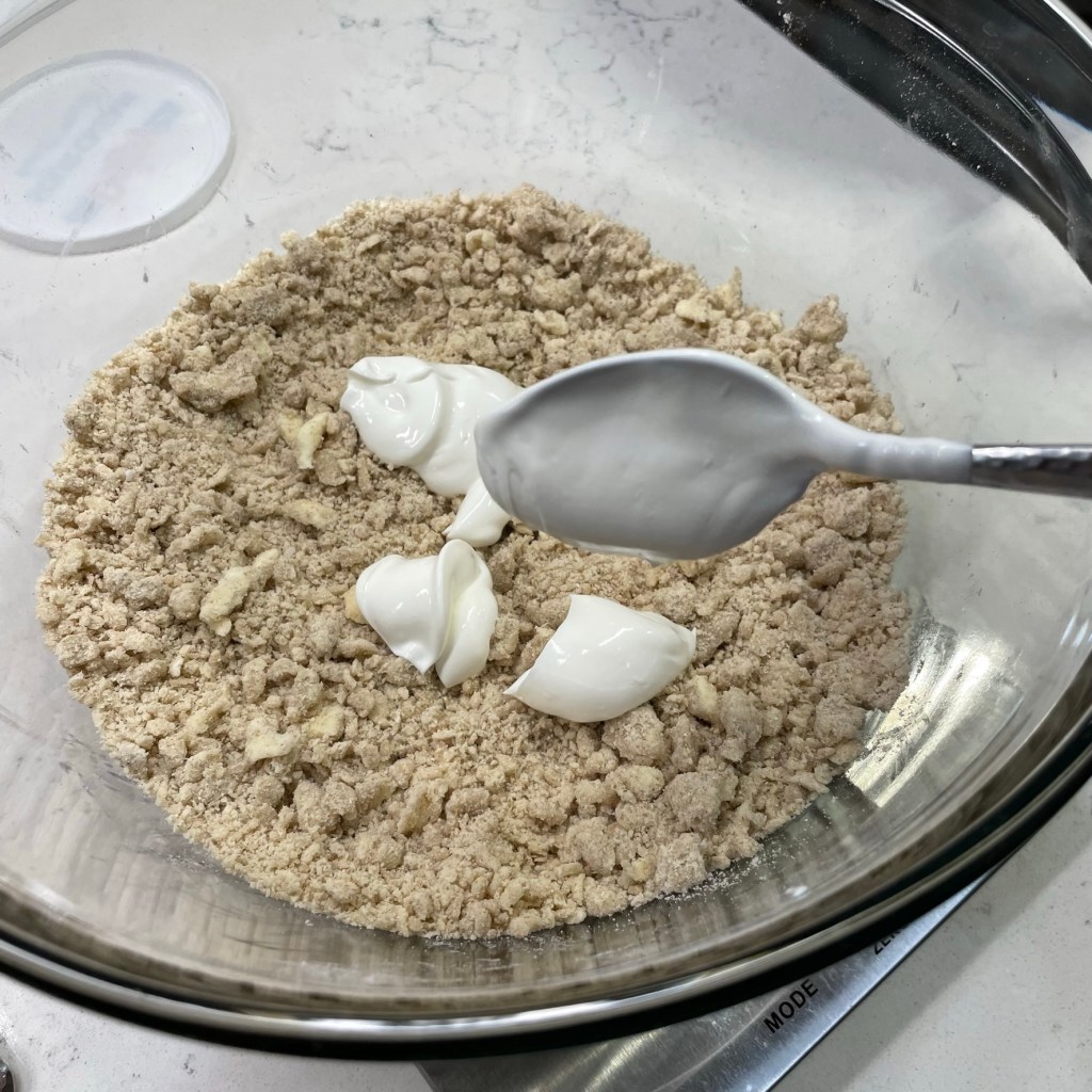 - With mixer running on low speed, blend in the flour and liquid ingredients, alternating and scraping down the bowl as you go.
