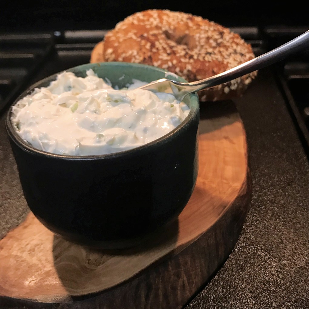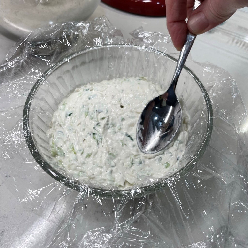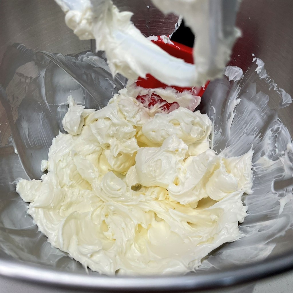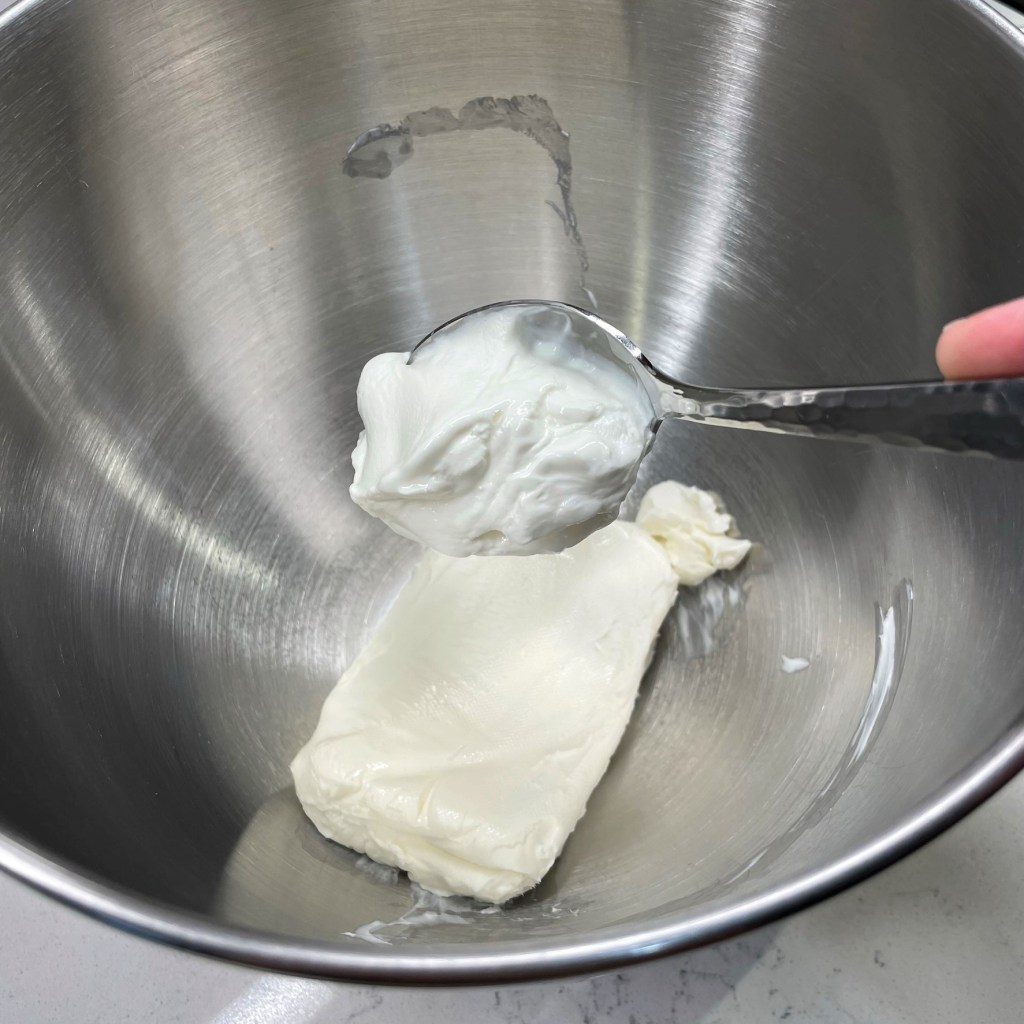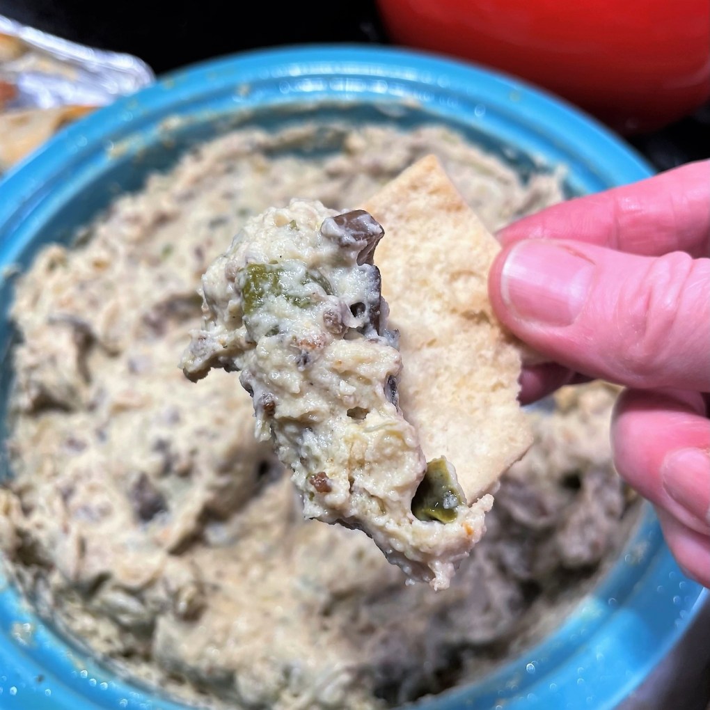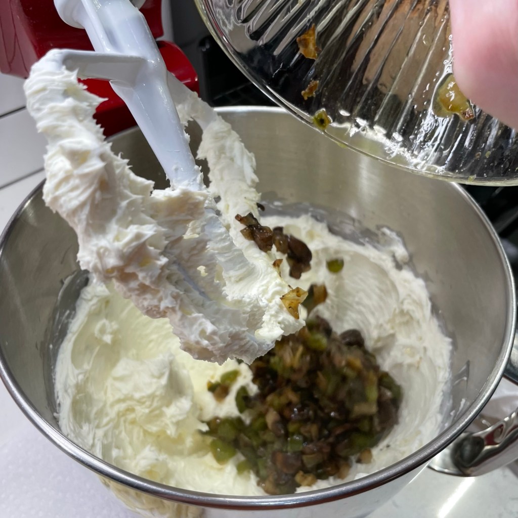 - Combine cream cheese, mayo, sour cream, garlic and pepper flakes in the bowl of a stand mixer, fitted with the paddle blade. Beat until evenly blended.