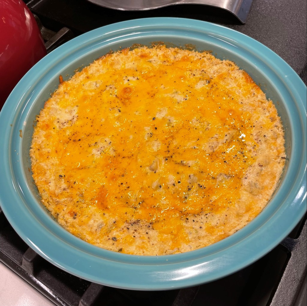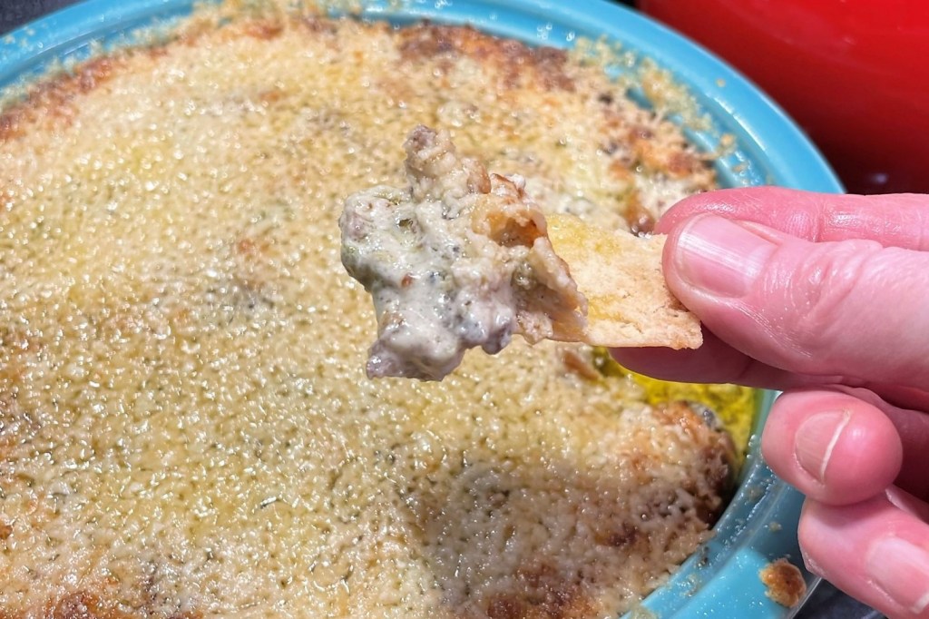 - Sprinkle toasted panko crumbs evenly over the top of the dip. Bake 30 minutes, or until dip is hot and bubbly around the edges. Cool for a few minutes before serving.