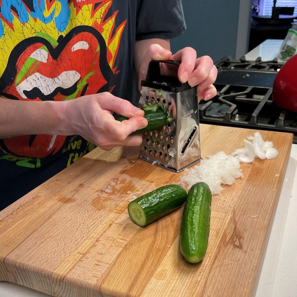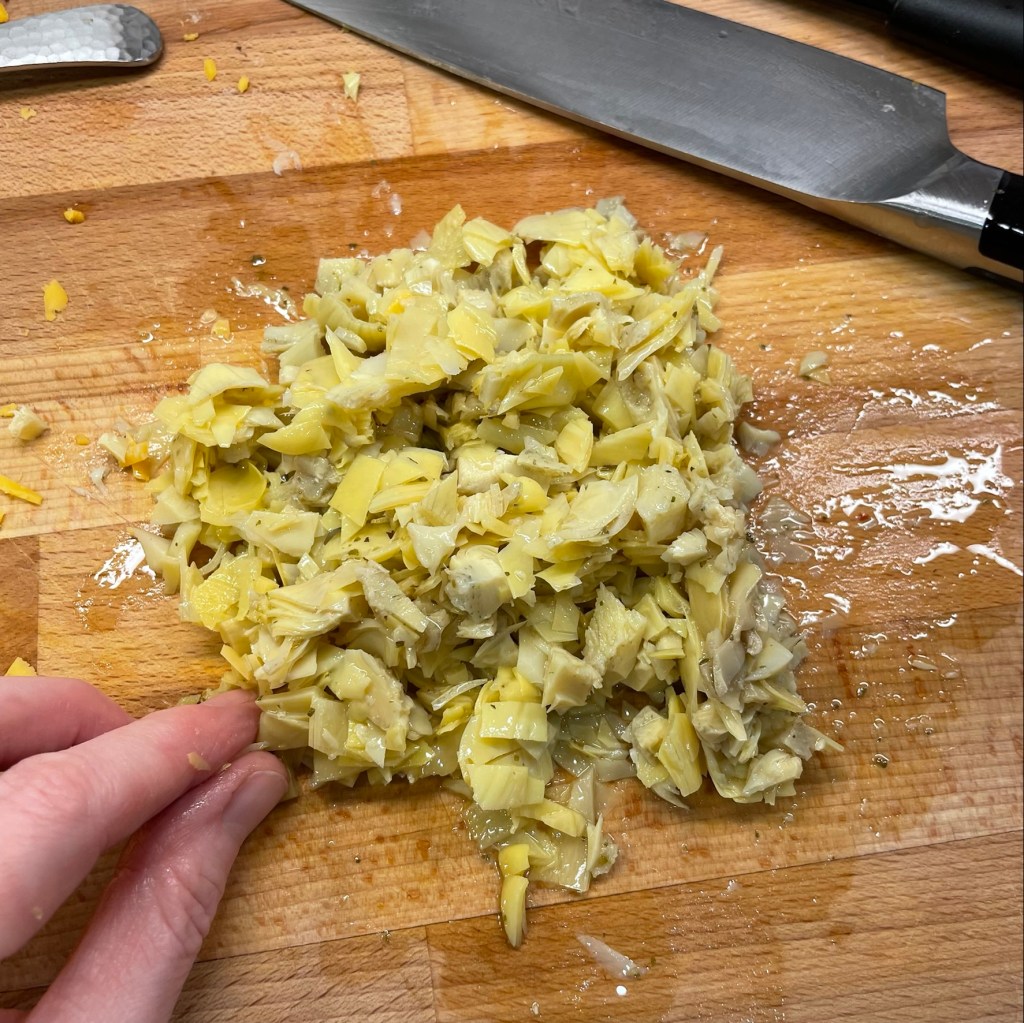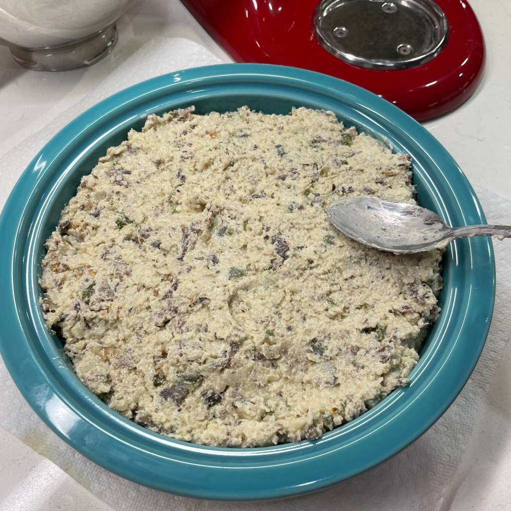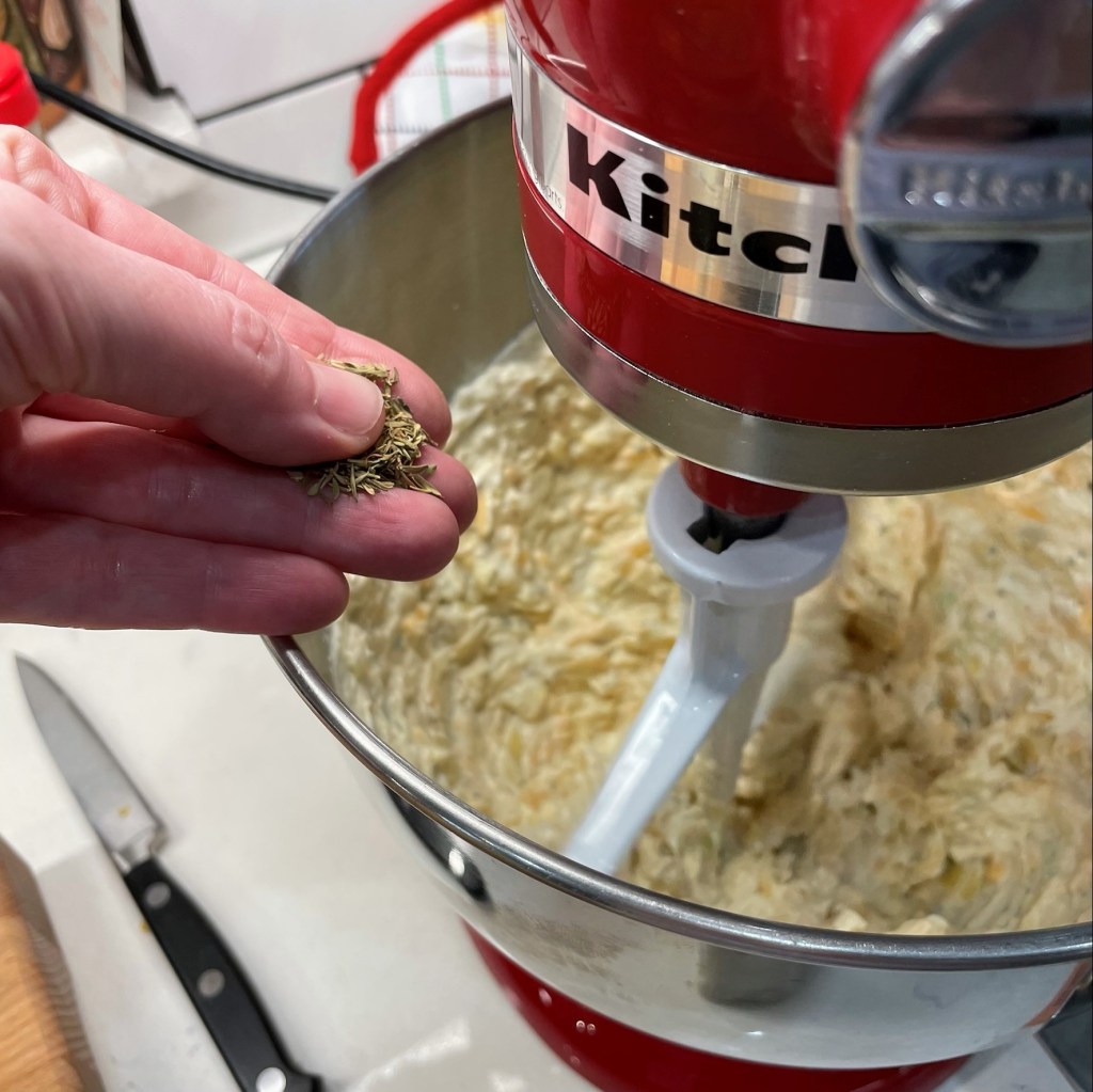 Cheeses came next, and for my collard dip, I followed Kau’s cue, using a generous amount of aged white cheddar for its sharpness plus a low-moisture mozzarella for its melting attribute. Finally, the star of the show, the cooked collard greens. You could bring home some leftover collards from a restaurant meal and use those if you don’t feel inclined to cook them yourself. You’ll need about one cup of cooked collards, drained of all excess moisture and cooled.