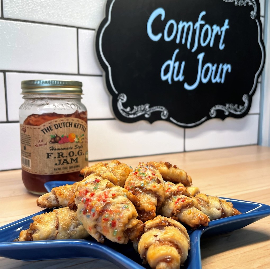 Today, that restaurant is called Kau, an open-concept restaurant with high ceilings, retrofitted into a retired textile mill. It bills itself as a steakhouse— a fair description, given that it has an in-house butcher shop where you can also purchase an array of meats to take home— but we were impressed with its other offerings, including this addictive appetizer. Collard dip is hearty, rustic and comforting— perfect for fall— and as we enjoyed ours across the table at Jerry’s favorite new hotspot, I promised him that I would recreate the dip one day at home and put it up on Comfort du Jour. Even better, we’d have him over and chat over a cocktail, preferably bourbon.
