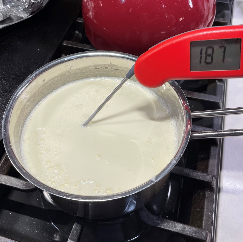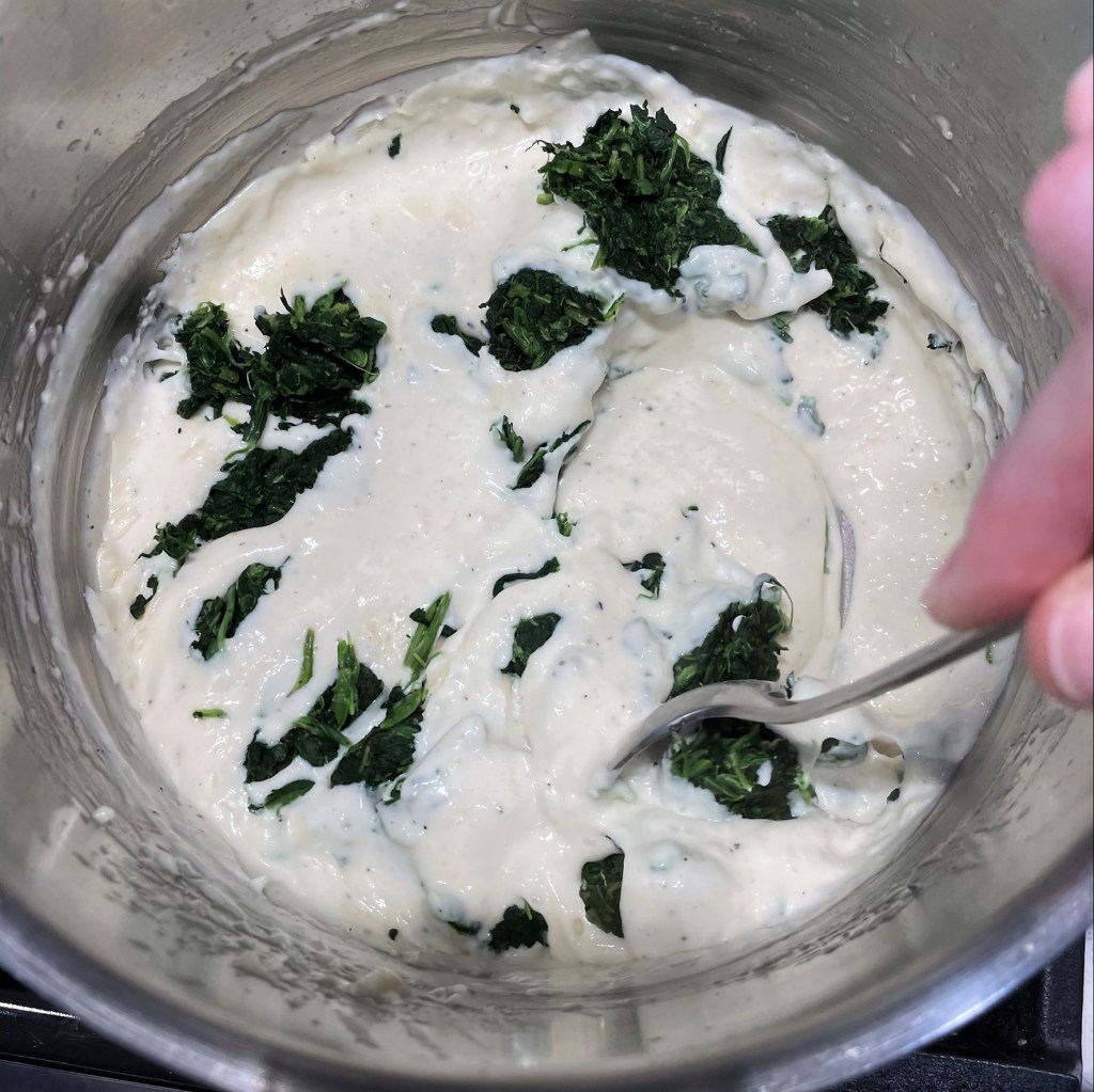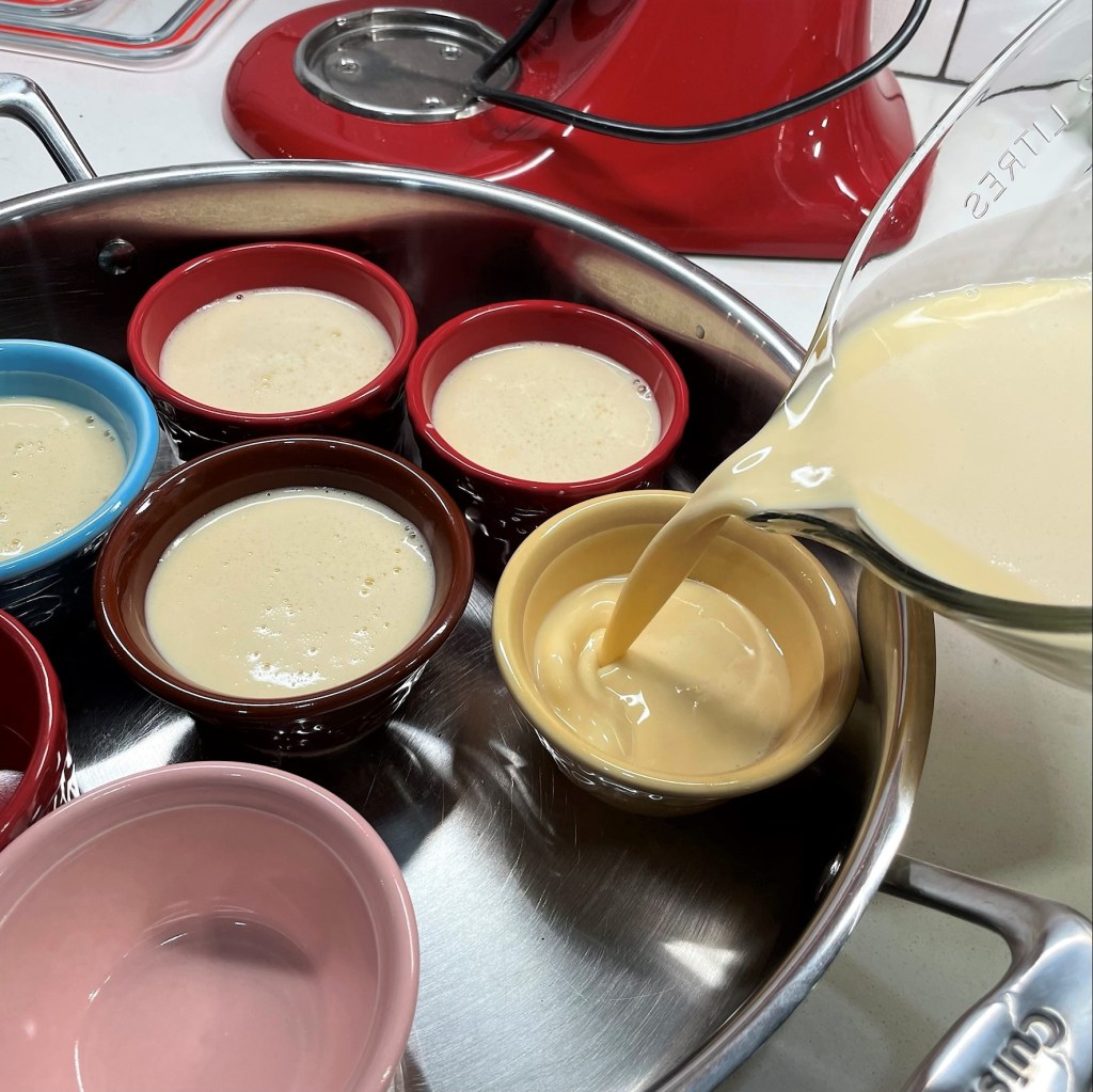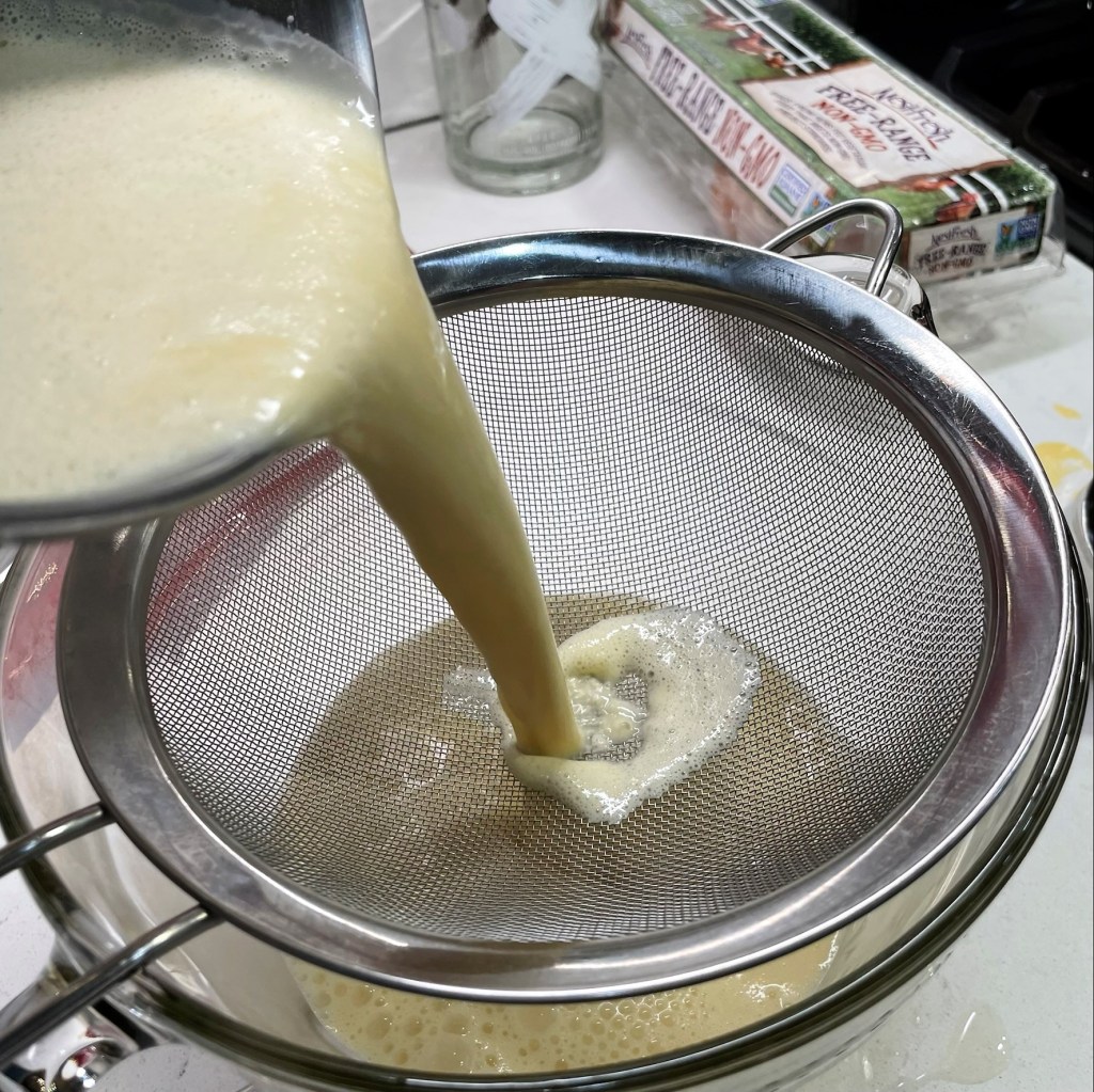 Now, I may not be Jewish, but I come from a long line of improvisers, and my instinct told me that dulce de leche, a thick, rich caramel sauce, would be a reasonable stand-in for most of the sugar in the basic kugel recipe I had found, and for some portion of the milk as well. I blended the thick dulce de leche with cream cheese, cottage cheese, milk, eggs, sour cream and vanilla, and folded in the buttered egg noodles, hoping that some measure of Ashkenazi wisdom would emanate from the wooden spoon that we had rescued from Les’s mother’s condo after she passed. Surely the spoon had done this before.