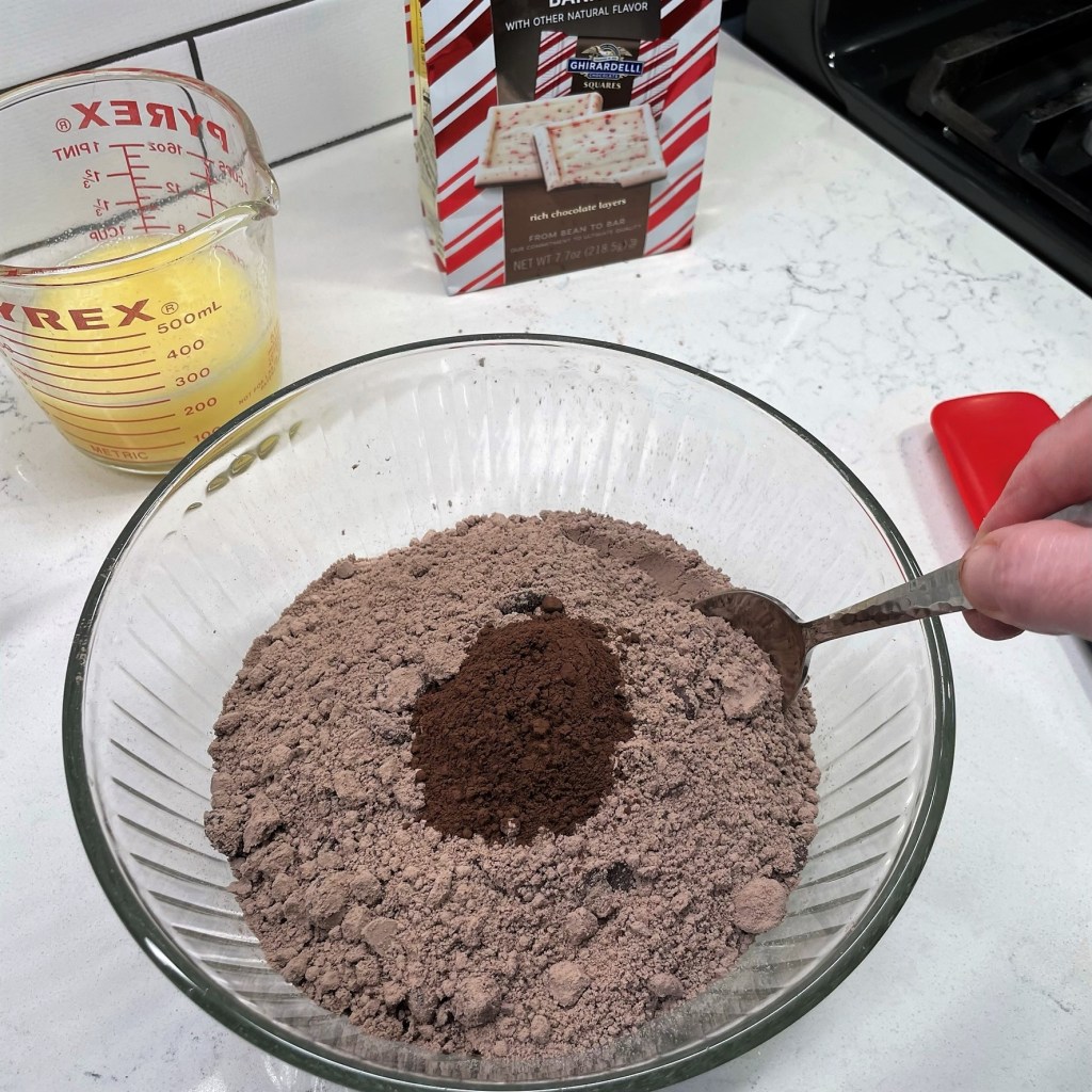 - Combine flour, baking powder, soda, salt and spices in a batter bowl.