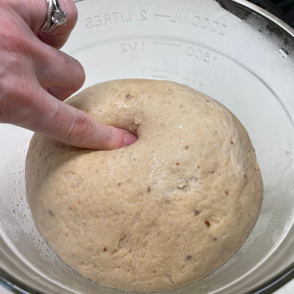 The dough probably won’t “double” in size, but it will look swollen. If an impression remains when you poke it, you’re ready for the next step.