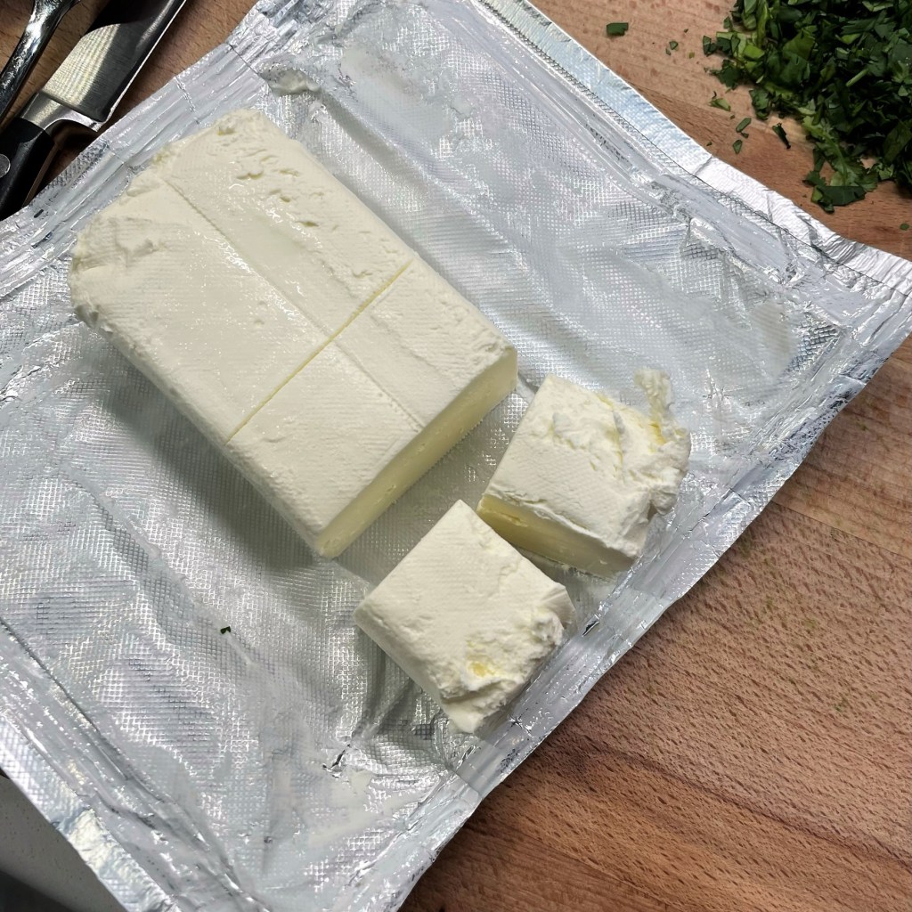 Approximately 1/2 cup feta, crumbled