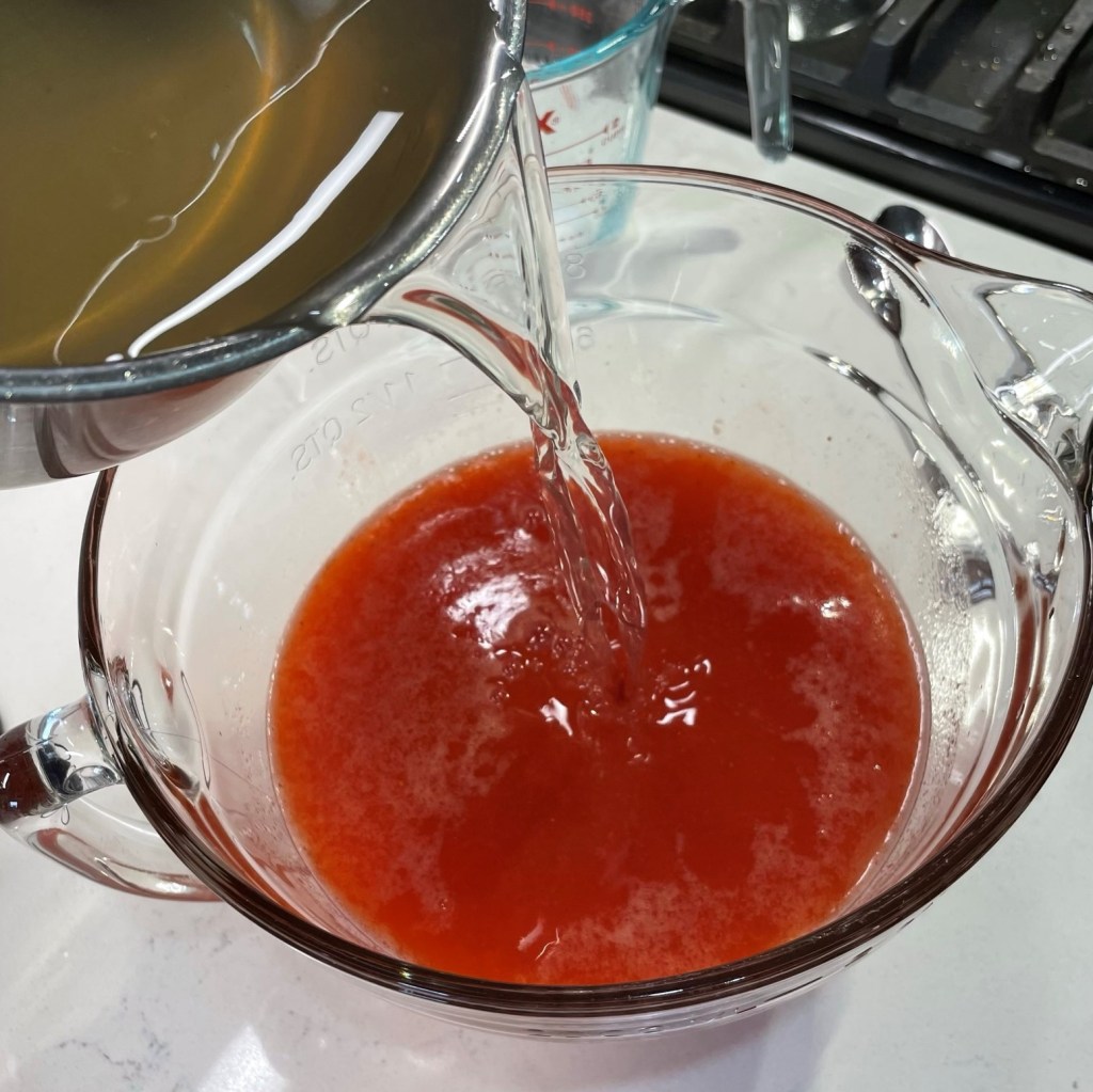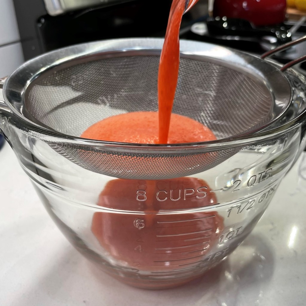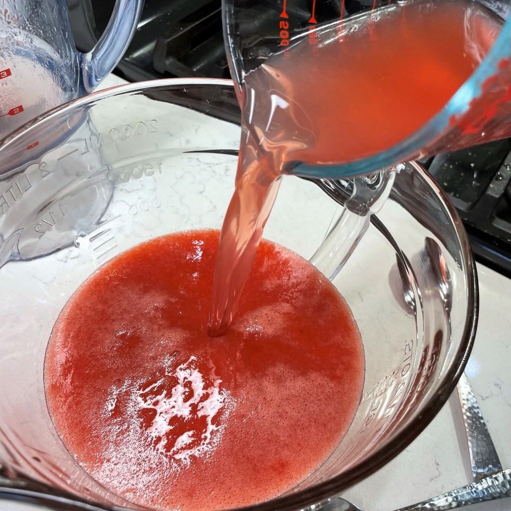 Add strawberries and 1 cup water in the pitcher of a blender or bowl of a food processor. Puree until no visible bits of berry remain. Strain through a mesh strainer over a large pitcher or bowl.