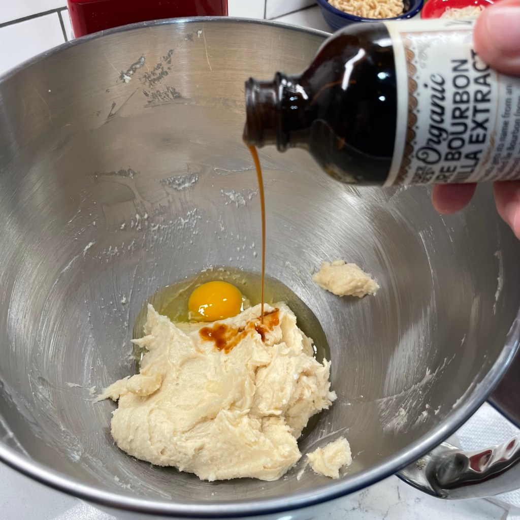 - Add egg and vanilla to bowl and beat until mixture is smooth.
