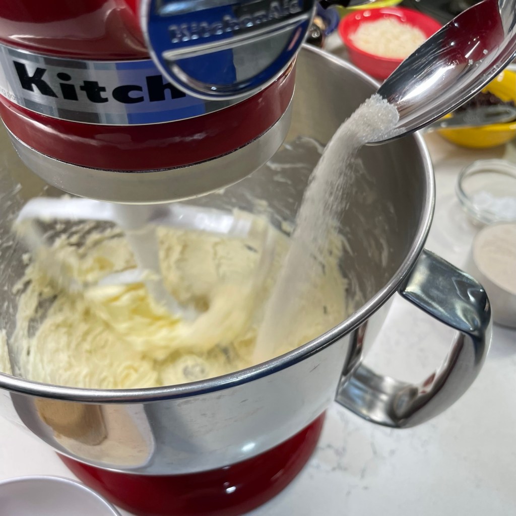 - Using the paddle attachment of a stand mixer, or the double blades of an electric handheld mixer, beat butter until creamed and airy. Add cane sugar, a few tablespoons at a time, until fluffy. Add brown sugar the same way.