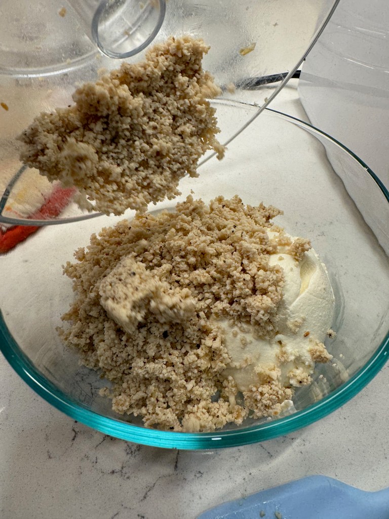 - Transfer processed mixture to a bowl with ricotta and egg and stir together until evenly blended. Refrigerate this mixture until you’re ready to fill the ravioli.