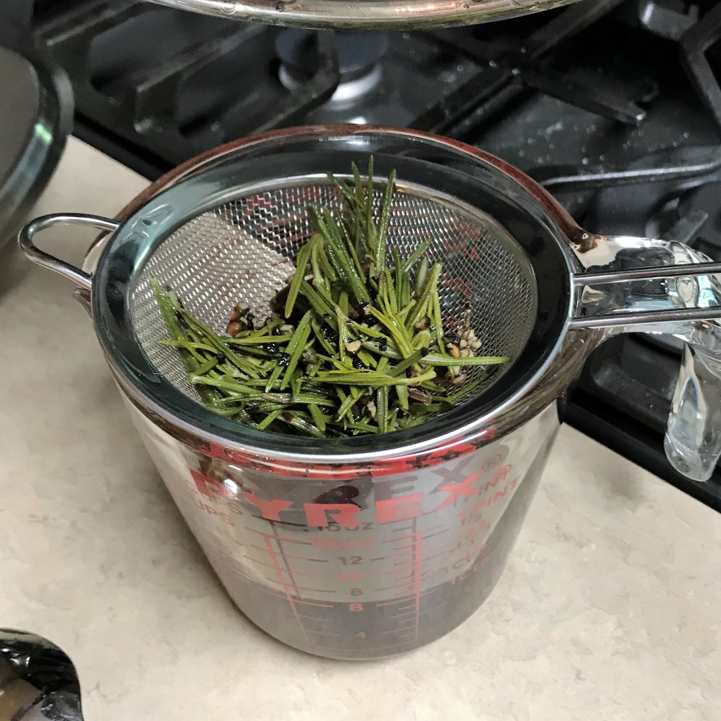 Straining through a coffee filter was near-impossible, so I shifted to a fine mesh strainer.
