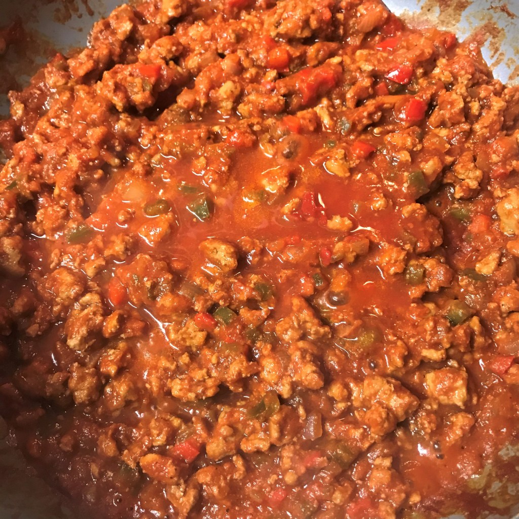 Combine tomato sauce, tomato paste, vinegar, mustard, molasses, Worcestershire and spices. Add to the meat mixture and stir gently to blend. If mixture looks is too thick, add a splash of water. If it’s too thin, add another spoon of tomato paste. It’s your kitchen, so take charge and don’t worry about my recipe. Let your taste buds tell you whether the mixture needs more salt, sweet or tang, and adjust accordingly.