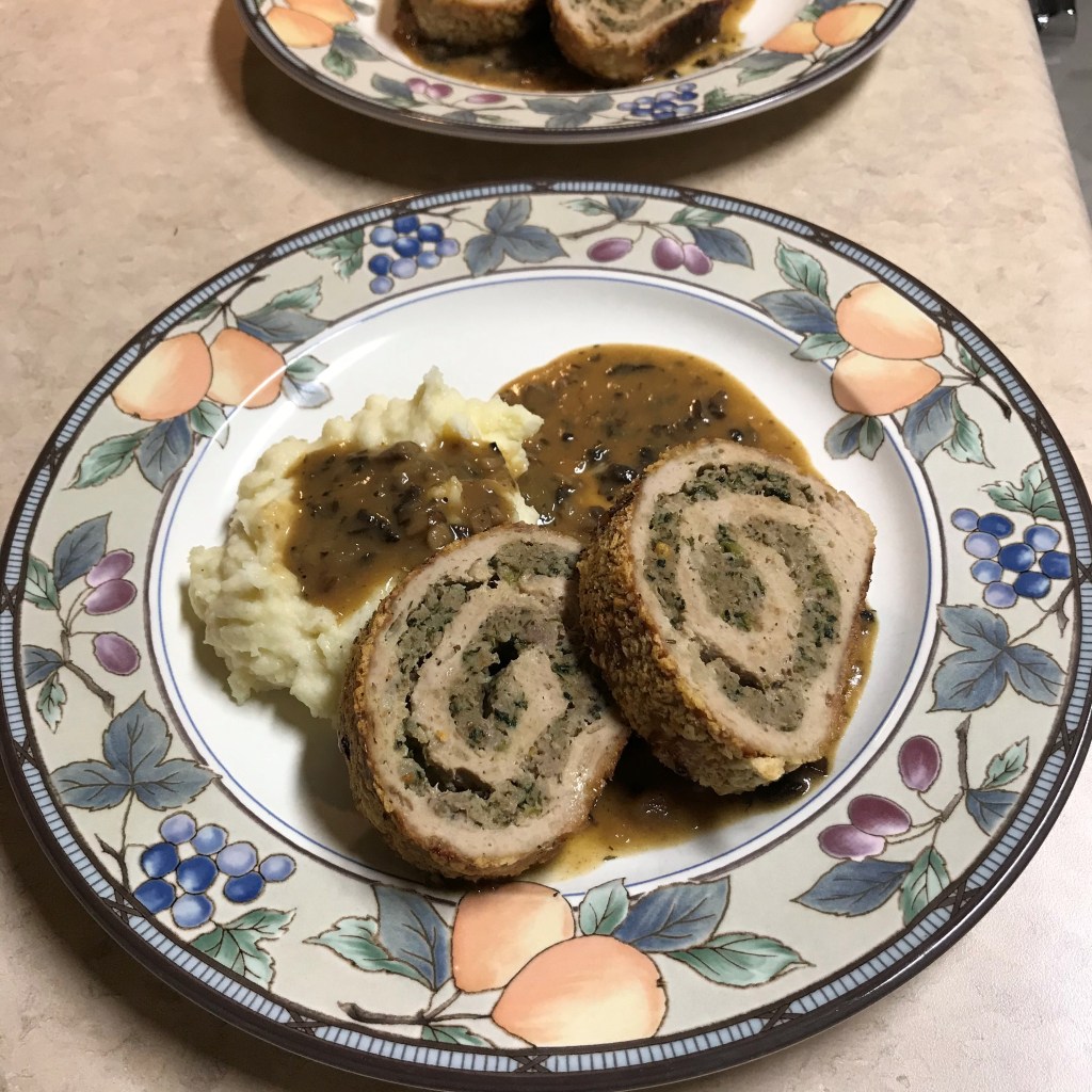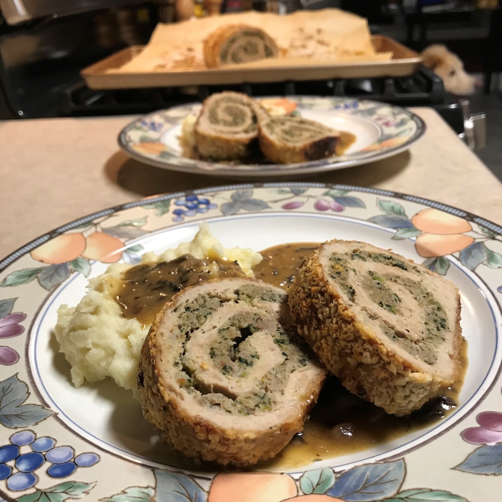 Served with Les’s incredible potatoes and the savory mushroom gravy. I’m in heaven!