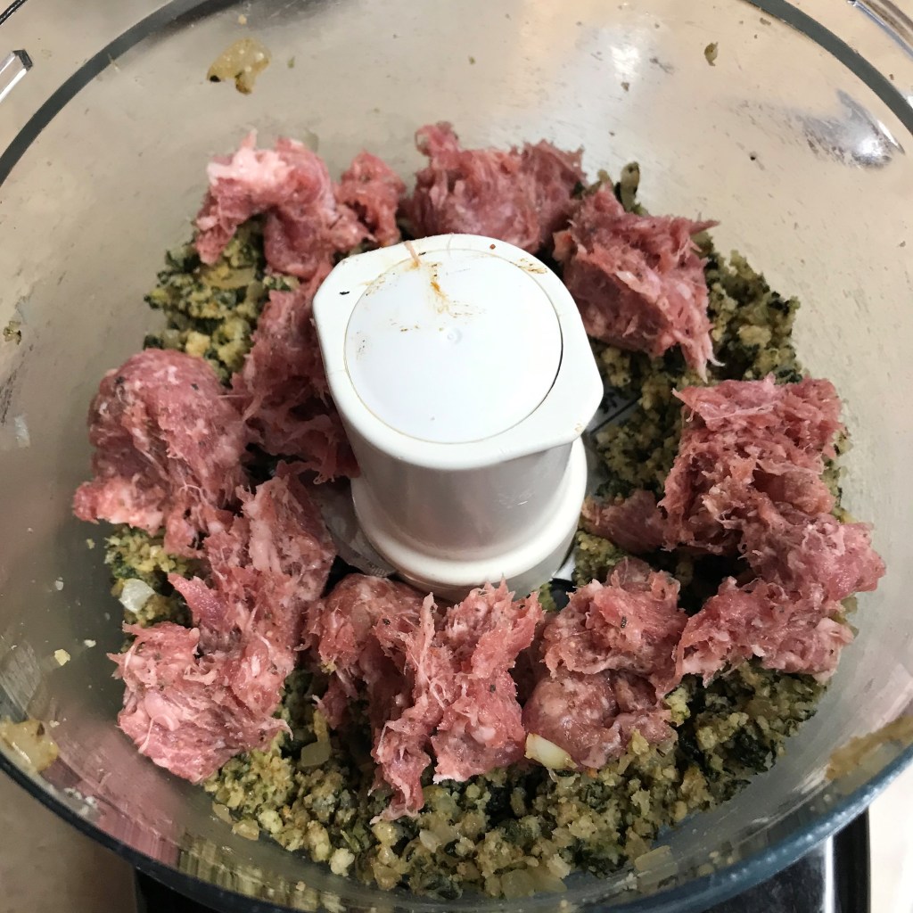 I added the sausage in small clumps so that the mixture could pulse together easier.