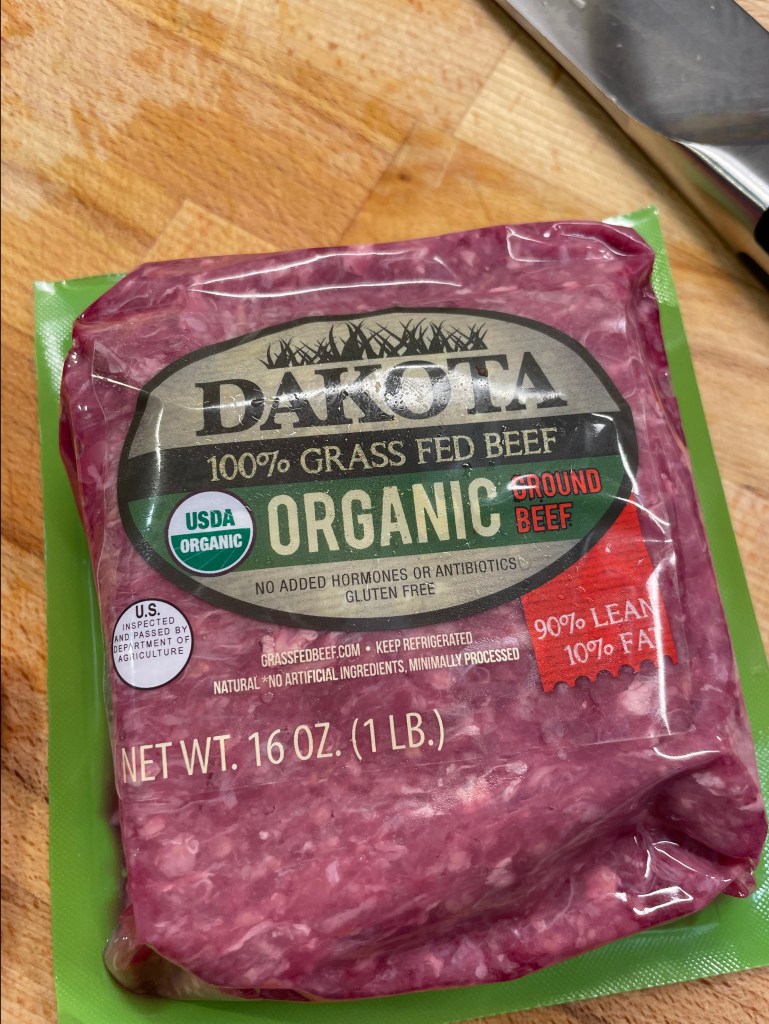 I had a small amount of ground turkey left over from another recipe, so I mixed it with enough ground beef to equal one pound. Whatever meat you choose, stick with at least 90% lean.