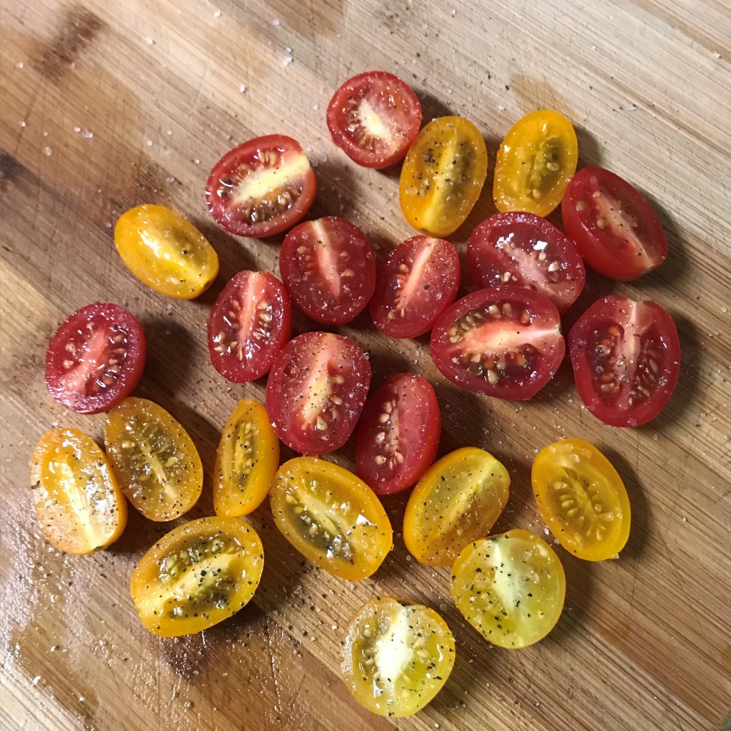 - 1/3 cup evoo; add 2 Tbsp at first, drizzle remaining in while processor runs