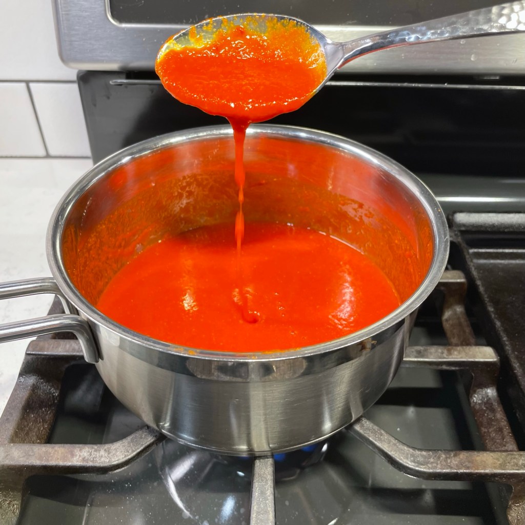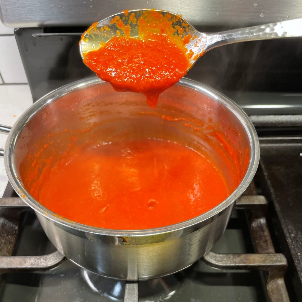 - Heat puree to a boil, then reduce heat and simmer until it reduces to desired thickness; for me, this was almost 20 minutes. Allow sauce to cool to room temperature, then transfer to a clean jar and store in the refrigerator.