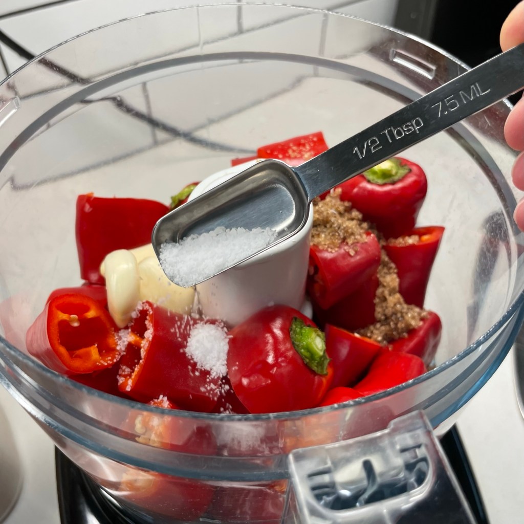- Add pepper chunks (seeds and all) to the small bowl of a food processor. Add sugar, salt and garlic. Pulse several times to break up the pepper into smaller chunks, then run the processor continually for about 10 seconds. Transfer pepper pulp to a clean mason jar. Cover with a lid and set the jar aside to ferment at room temperature for 5 to 7 days.