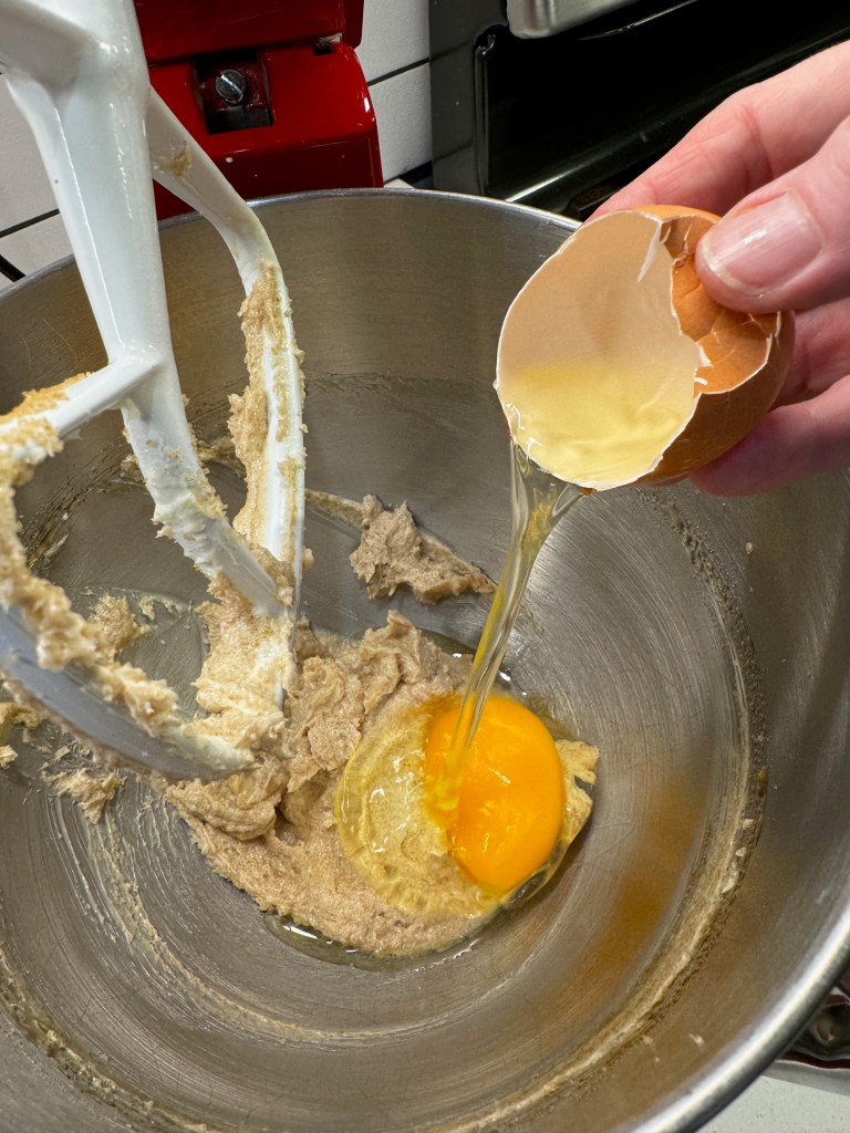 - In a large mixing bowl (or the bowl of a stand mixer fitted with paddle), stir together browned butter and brown sugar until evenly blended. Add apple butter and egg. Beat until combined and somewhat fluffy.