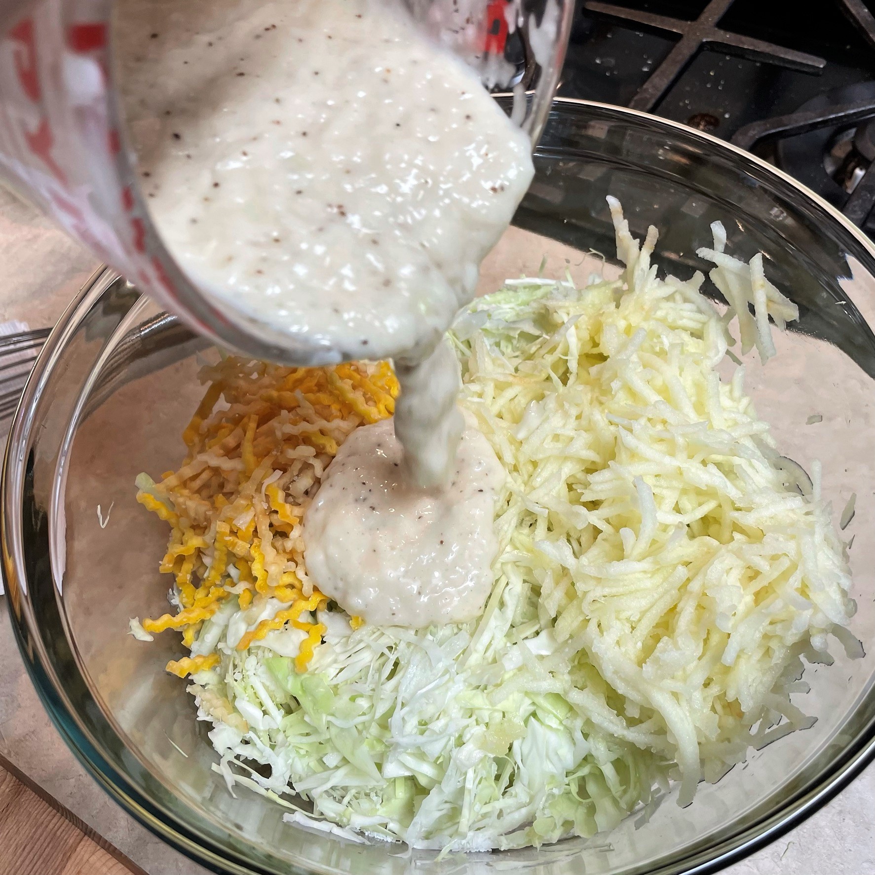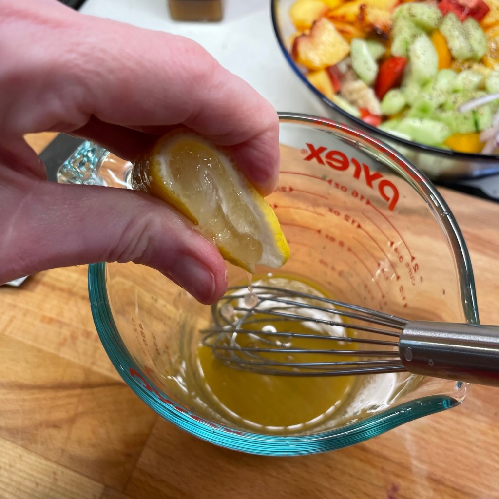 Whisk together dressing ingredients. Adjust salt and pepper to taste.