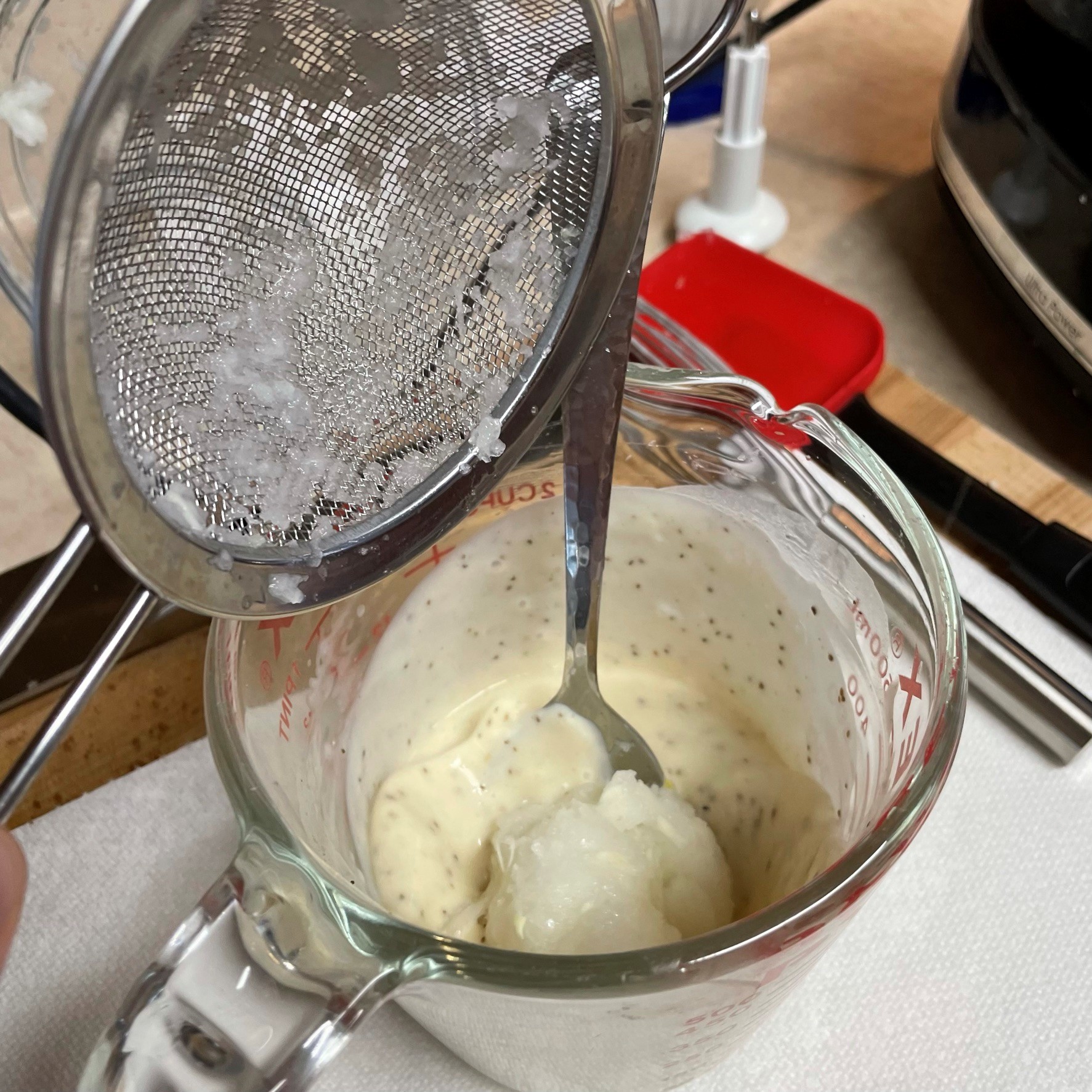 The pale yellow is about to turn pink! Addition of cherry juice is very non-traditional, but it was delicious in the finished tiramisu!