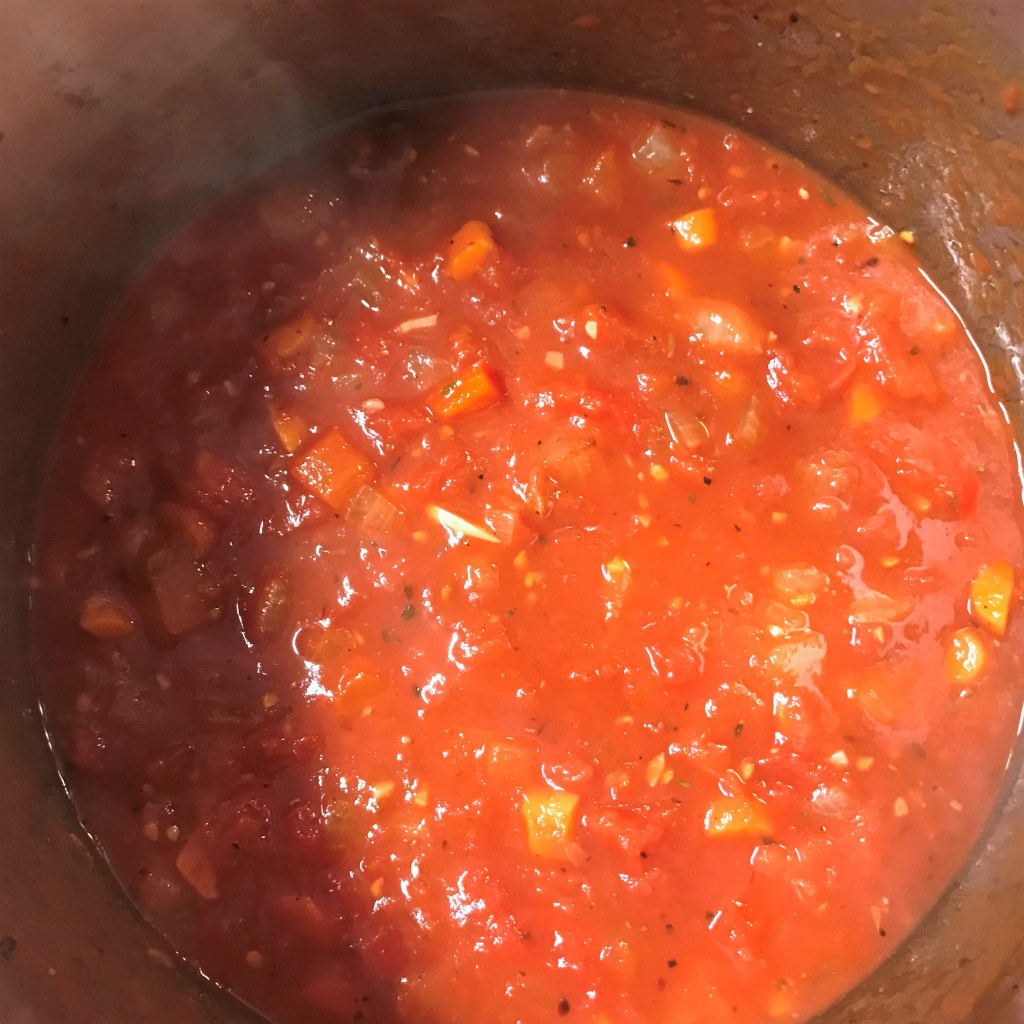 Add the onions, garlic and baby tomatoes to the olive oil and tilt the pan around to “roll” and coat the tomatoes in the oil. Add the Italian herbs, and season with sea salt and freshly cracked black pepper. Keep the heat to a bare minimum. This super-slow pace might feel a little awkward if you are accustomed to sautéing in oil. We’re doing something else—rehydrating the tomatoes should not be rushed, and I can’t emphasize enough that your heat should be at the lowest setting your burner allows. You don’t want to see or hear any sizzling at all; if you do, it’s too hot. The pictures in this slideshow are time-stamped, and the captions will help explain how this should progress: