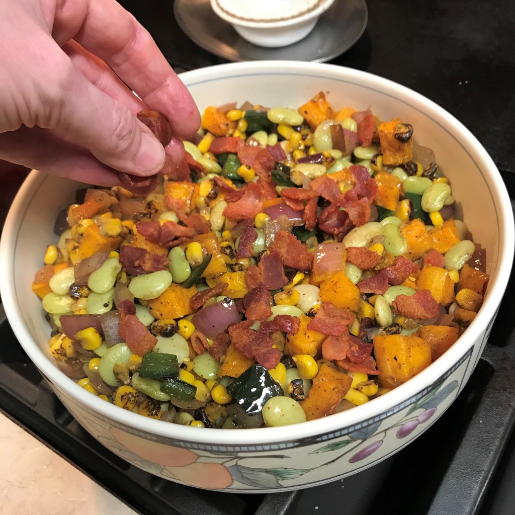 But at some point, we’ve gotta eat, right? I’ve put some new ideas into practice to ensure that we have something of substance, without me having to stand at a hot stove. Taking a cue from my blog buddy, Michelle, who endured the vicious summer heat of California’s Coachella Valley for too many years, I have found it helpful to do my cooking in the morning hours and then serve up the food as cool meals in the evenings. This has proven to be beneficial for more than one reason, as I often find myself less motivated at the end of the workday; my brain has run dry of decision-making ability. Getting meals done early has saved my sanity!
